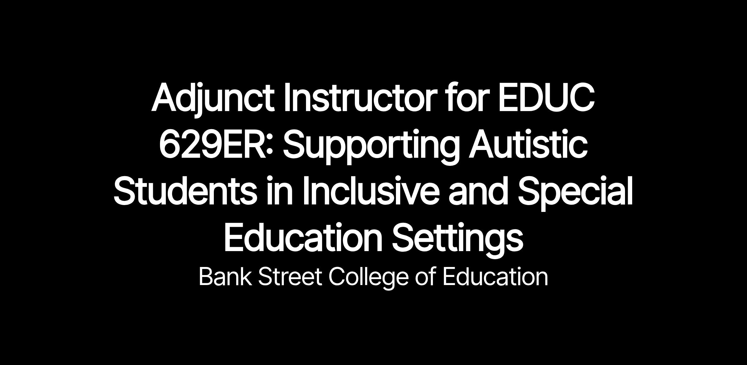Position Vacancy—Online Adjunct Instructor for EDUC 629ER: Supporting Autistic