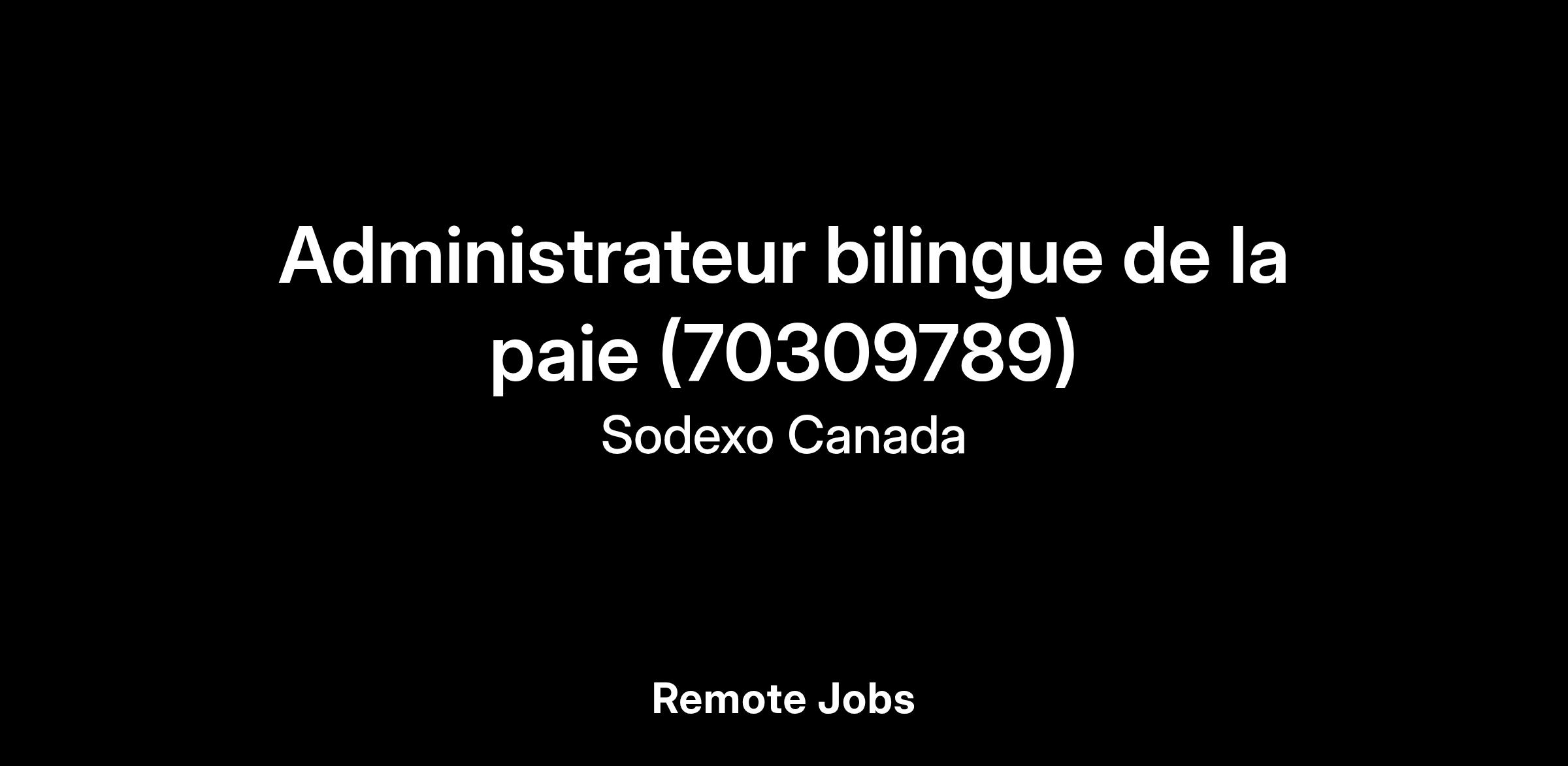 Développez votre carrière au sein d'une entreprise qui partage votre passion ! Notre équipe chargée de la paie offre une nouvelle opportunité passionnante de rejoindre Sodexo en tant que prochain administrateur de paie bilingue. Cette opportunité est ouverte aux candidats situés partout au Canada et peut être entièrement à distance ou hybride dans notre bureau de Montreal.