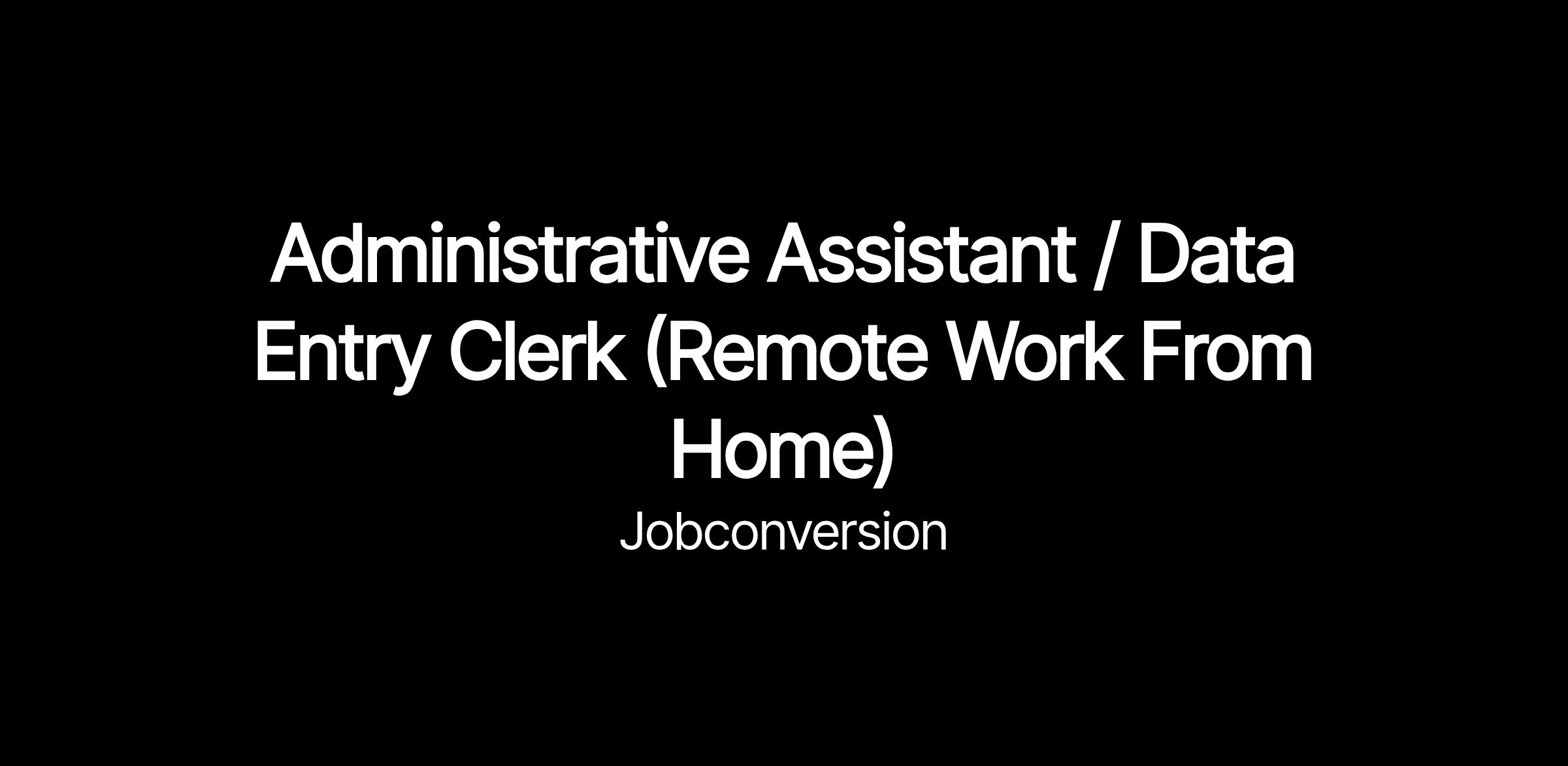 Administrative Assistant / Data Entry Clerk (Remote Work From Home)