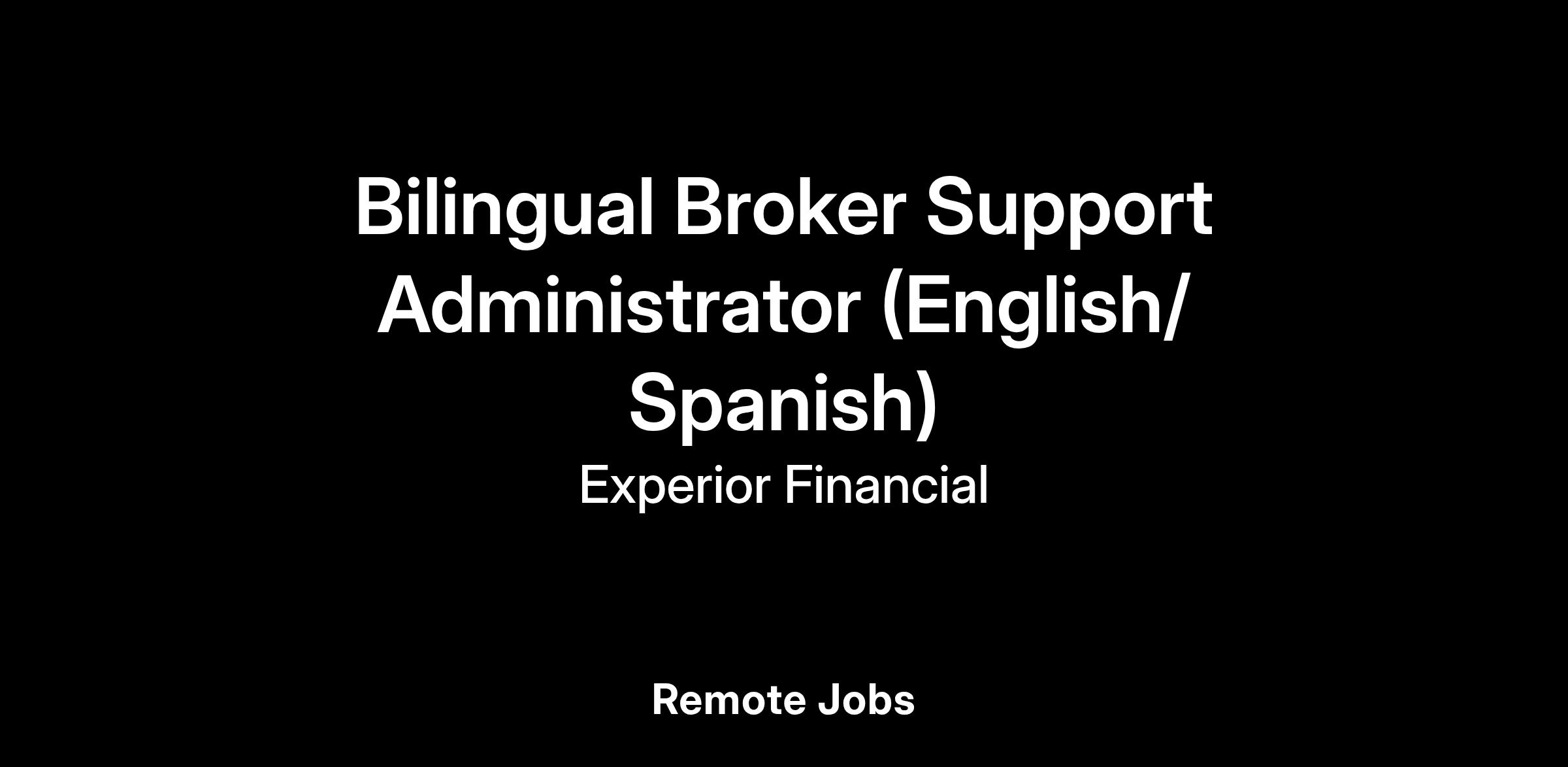 Bilingual Broker Support Administrator (English/ Spanish)