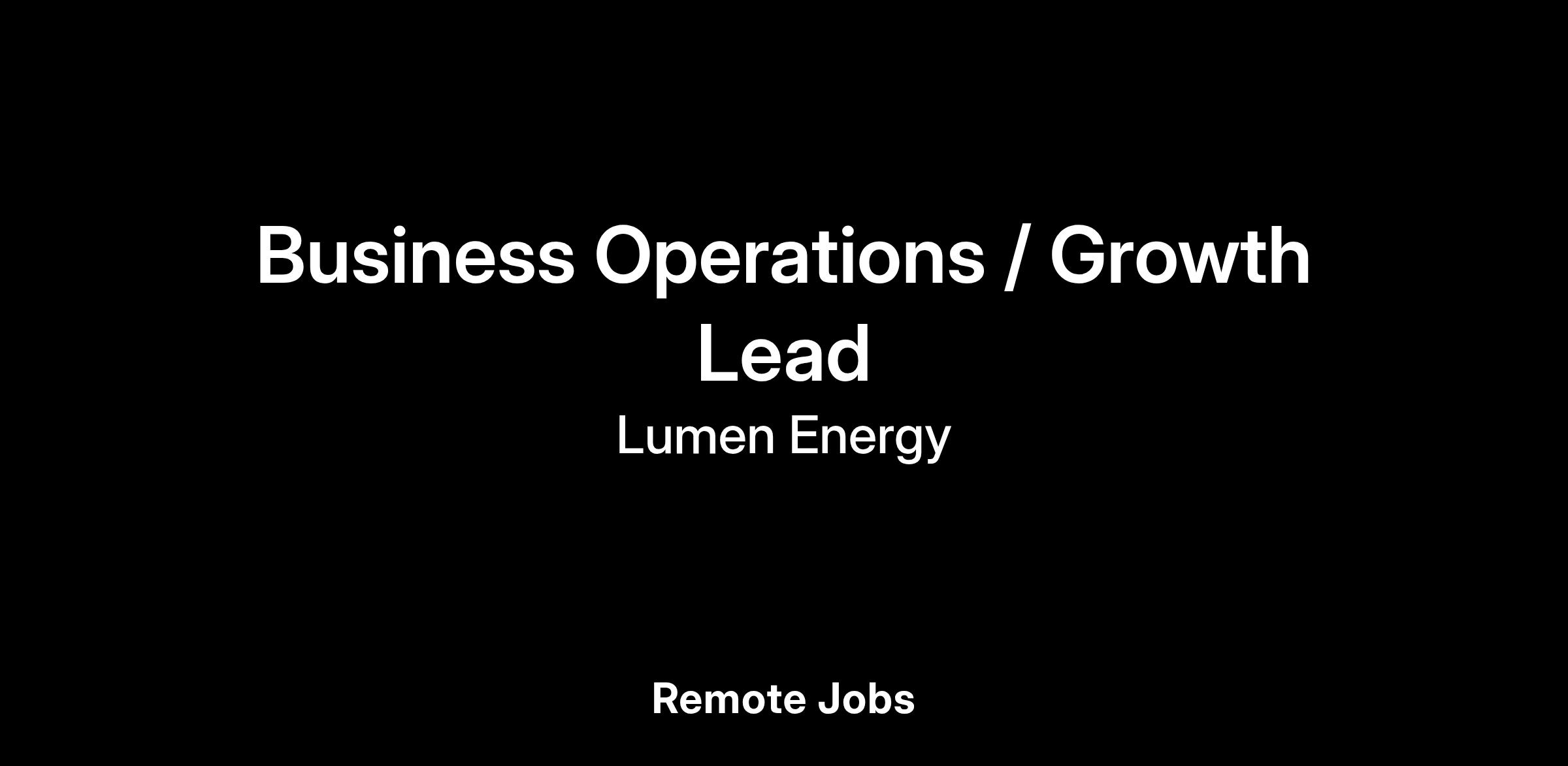 We’re hiring a Business Operations / Growth Lead to drive the next chapter of Lumen’s growth. You'll support Lumen's largest customers in navigating complex solar and battery storage project transactions, shape Lumen’s operations, and influence our growth strategy along the way.