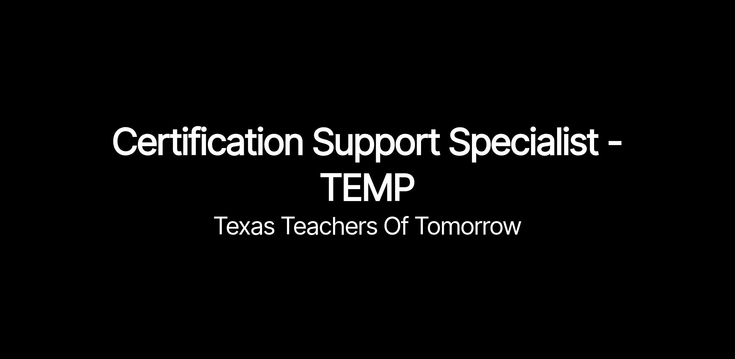 Teachers of Tomorrow is seeking a dynamic Certification Support Specialist to work on a temporary basis (April-August/September). The ideal candidate will be a passionate self-starter who thrives in a fast-paced environment. This position is eligible for a hybrid or remote work schedule. The pay for this position is $21.63/hr. Candidates residing in the Central Time Zone are preferred.