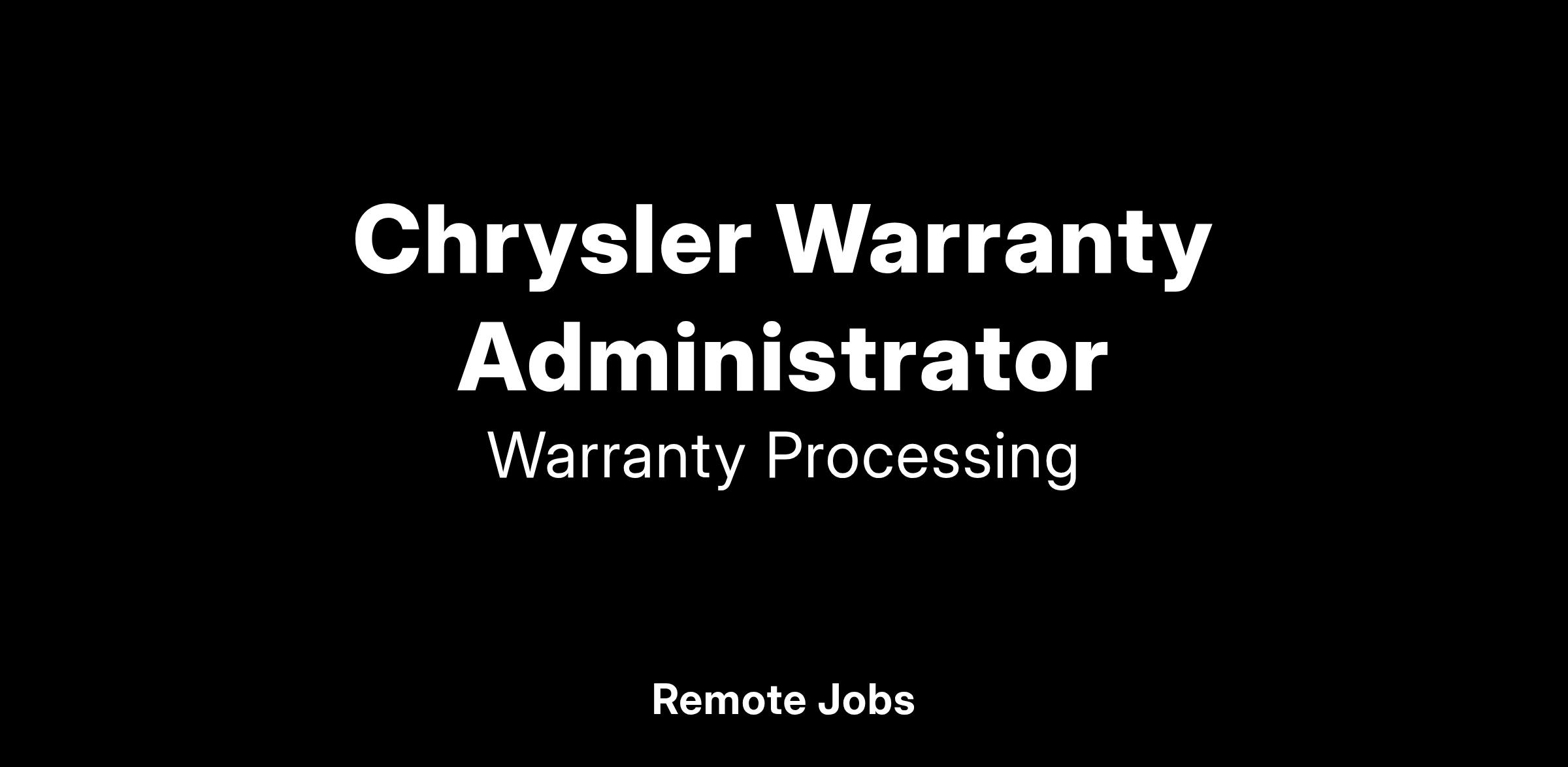 *Previous Auto Warranty Administration Experience Required
