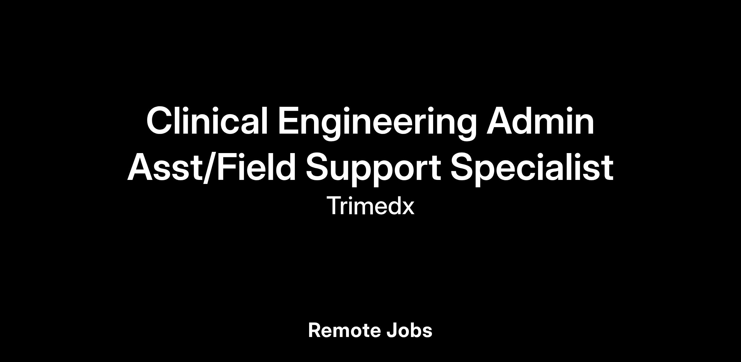 Community / Marketing Title: Clinical Engineering Admin Asst/Field Support Specialist