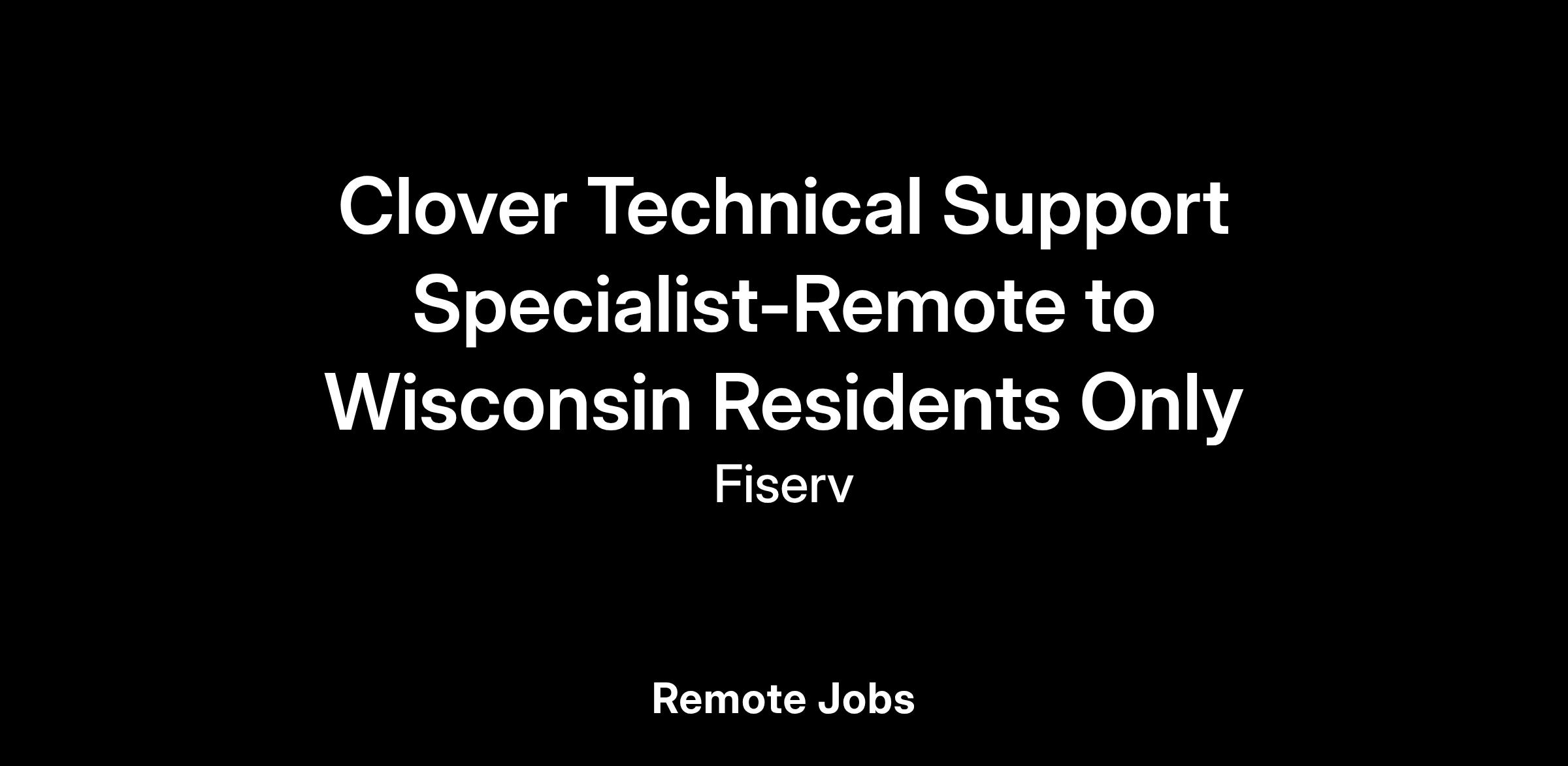 Clover Technical Support Specialist-Remote to Wisconsin Residents Only