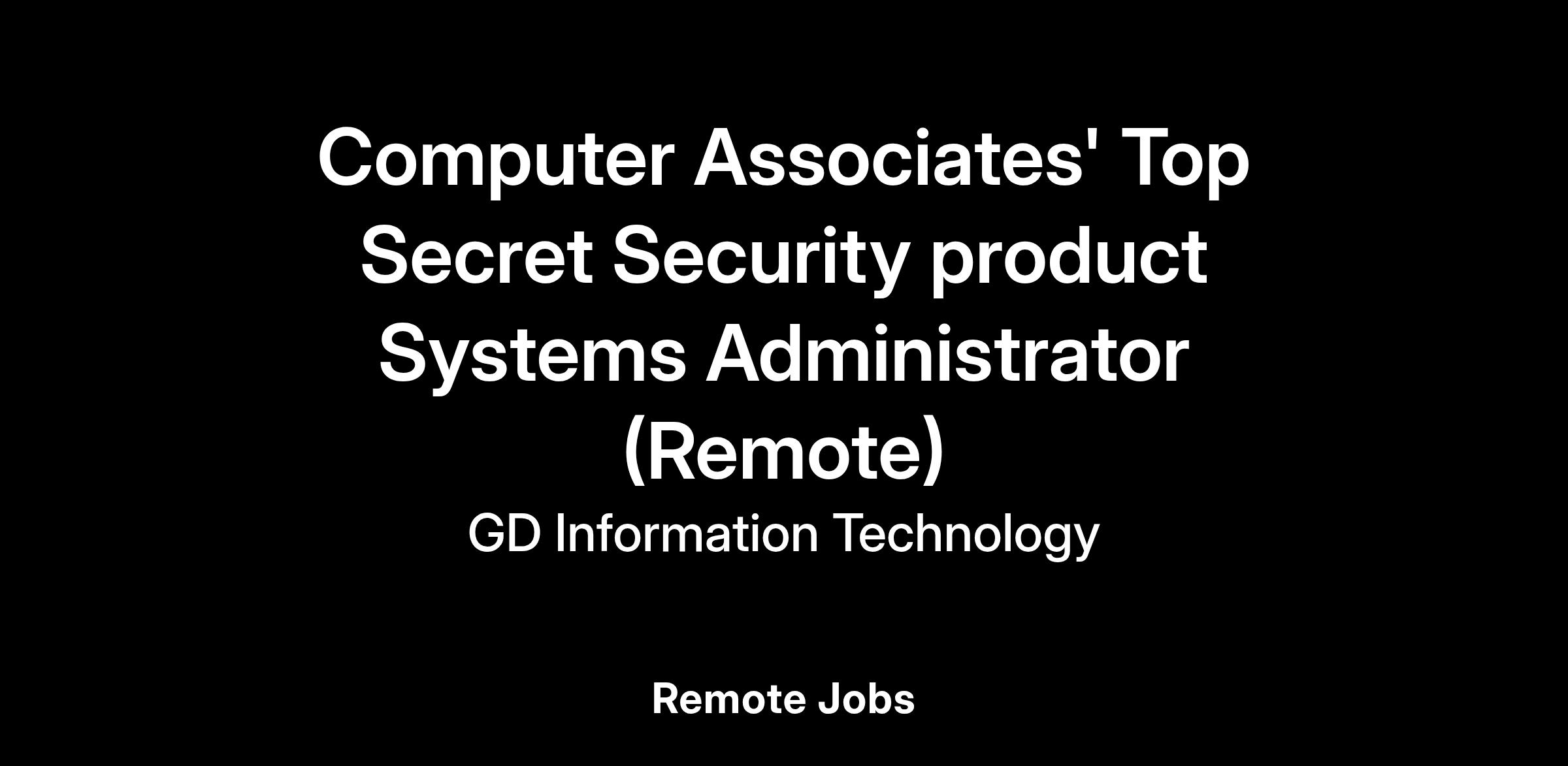 We are GDIT. The people supporting and securing some of the most complex government, defense, and intelligence projects across the country. We are currently seeking a Computer Associates' Top Secret Security product Systems Administrator .