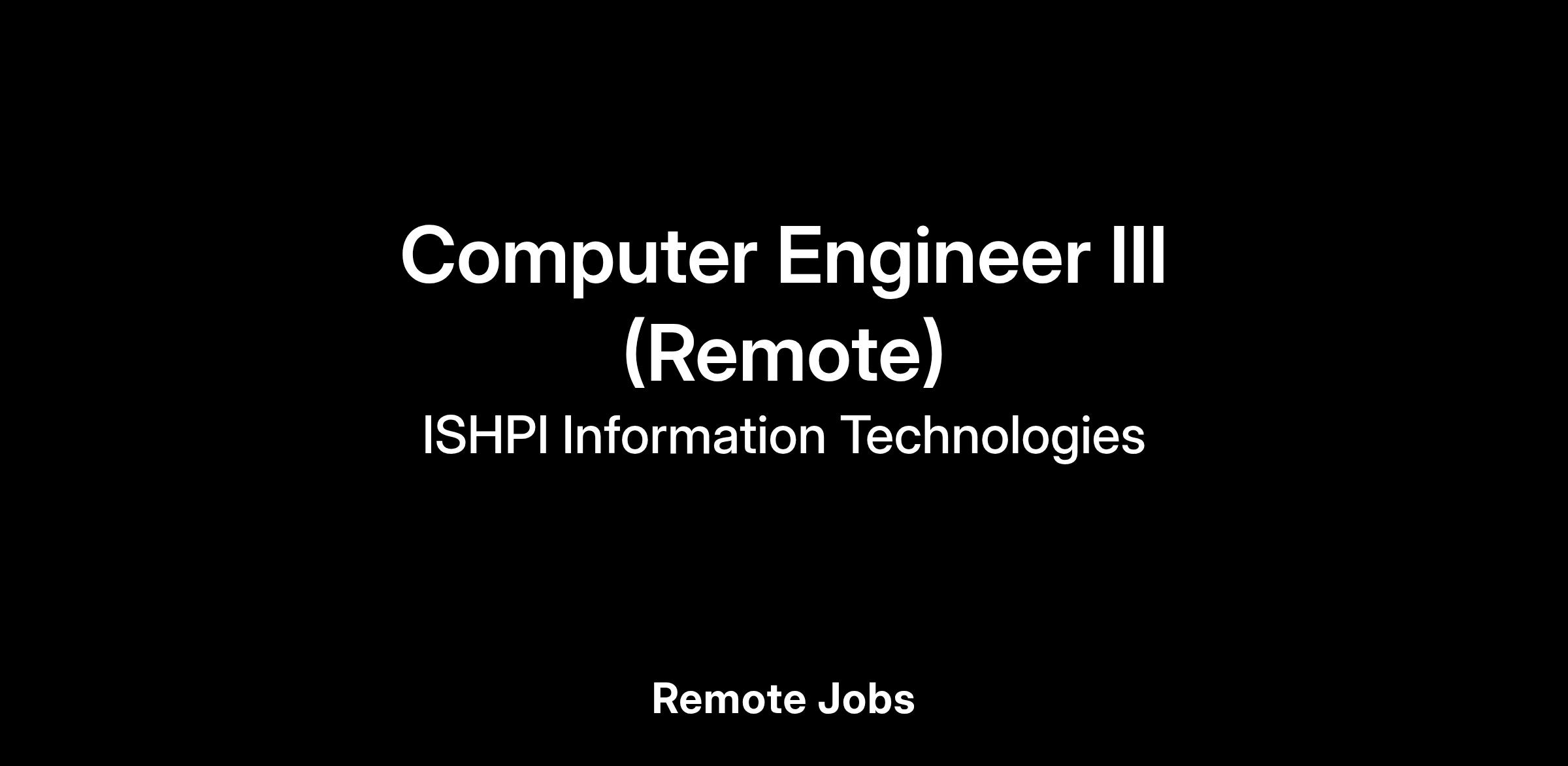 “Ishpi Information Technologies, Inc. is an Equal Opportunity Employer. All qualified candidates will be considered without regard to legally protected characteristics.