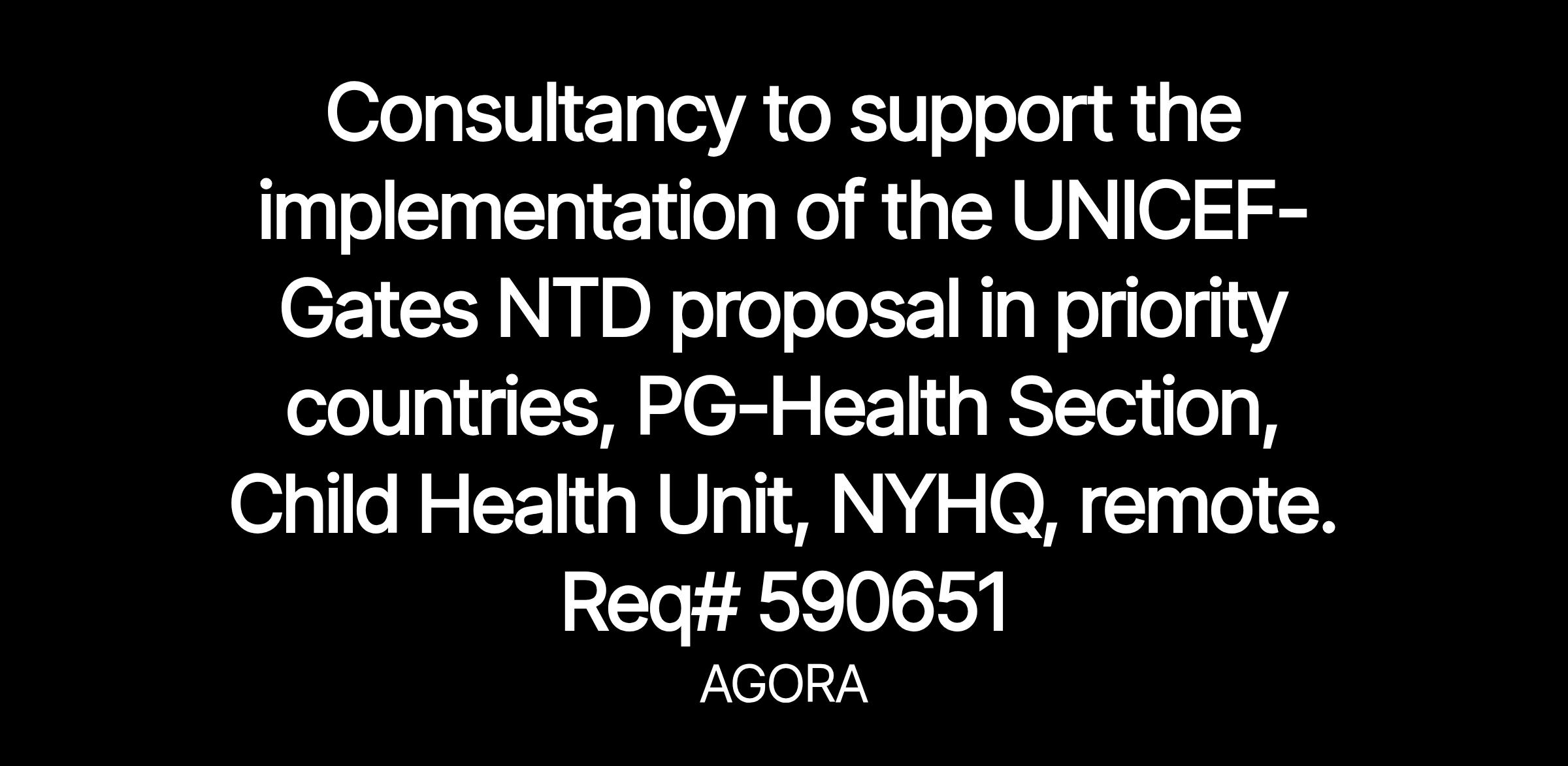 UNICEF offers reasonable accommodation for consultants/individual contractors with disabilities. This may include, for example, accessible software, travel assistance for missions or personal attendants. We encourage you to disclose your disability during your application in case you need reasonable accommodation during the selection process and afterwards in your assignment.