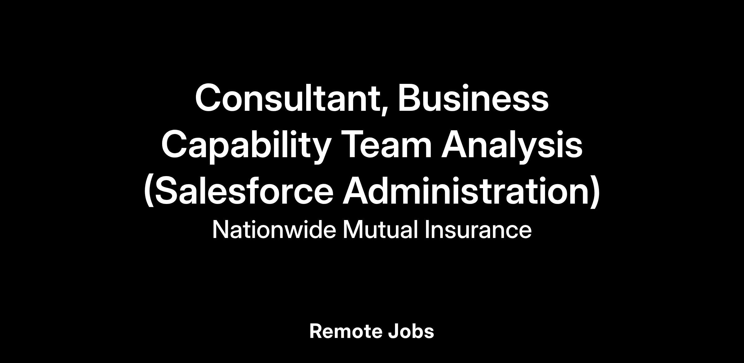 Nationwide pays on a geographic-specific salary structure and placement within the actual starting salary range for this position will be determined by a number of factors including the skills, education, training, credentials and experience of the candidate; the scope, complexity and location of the role as well as the cost of labor in the market; and other conditions of employment. If a Sales job, Sales Incentives, based on performance goals are possible in addition to this range. Note on Compensation for Part-Time Roles: Please be aware that the salary ranges listed below reflect full-time compensation. Actual compensation may be prorated based on the number of hours worked relative to a full-time schedule.The national salary range for Consultant, Business Capability Team Analysis : $95,000.00-$197,000.00The expected starting salary range for Consultant, Business Capability Team Analysis : $106,000.00 - $158,000.00