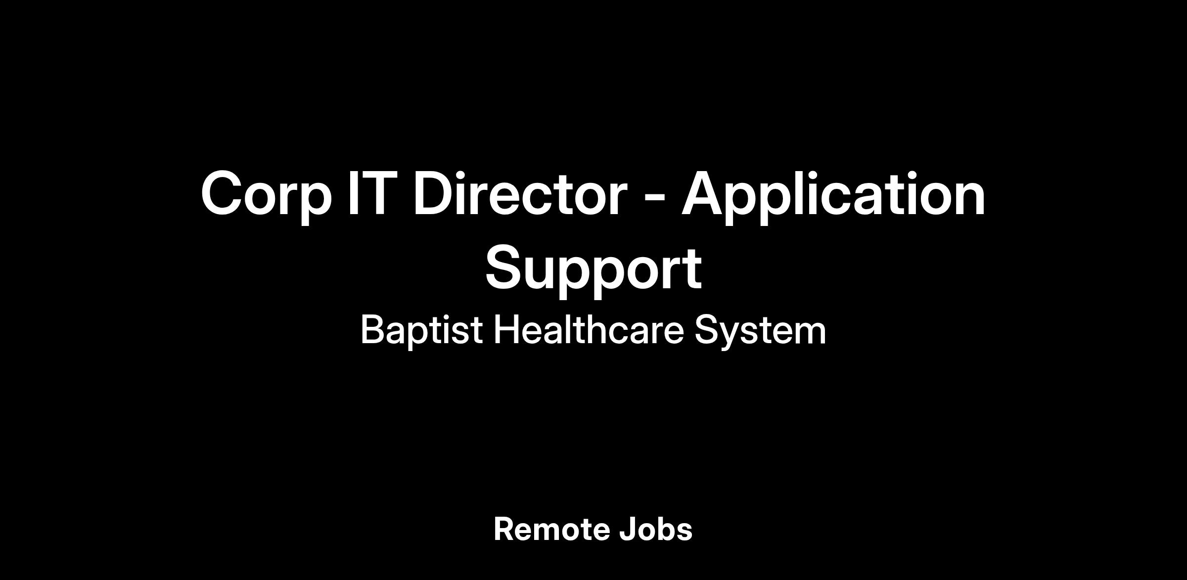 Baptist Health is looking for a Corp IT Director - Application Support to join their team. This is a remote work position that requires residency in KY or IN