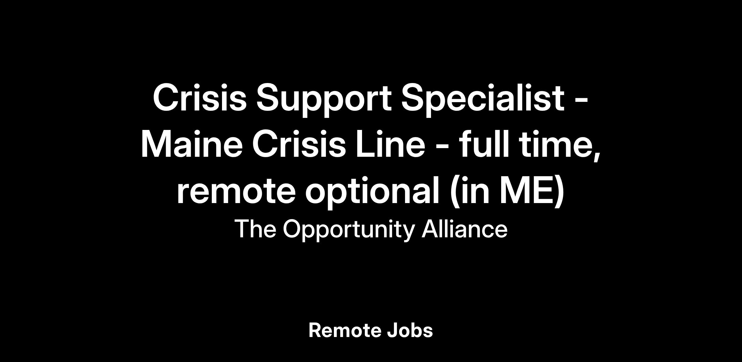 The Opportunity Alliance is hiring Full-Time Crisis Support Specialist(s) to join the team with the Maine Crisis Line (MCL).