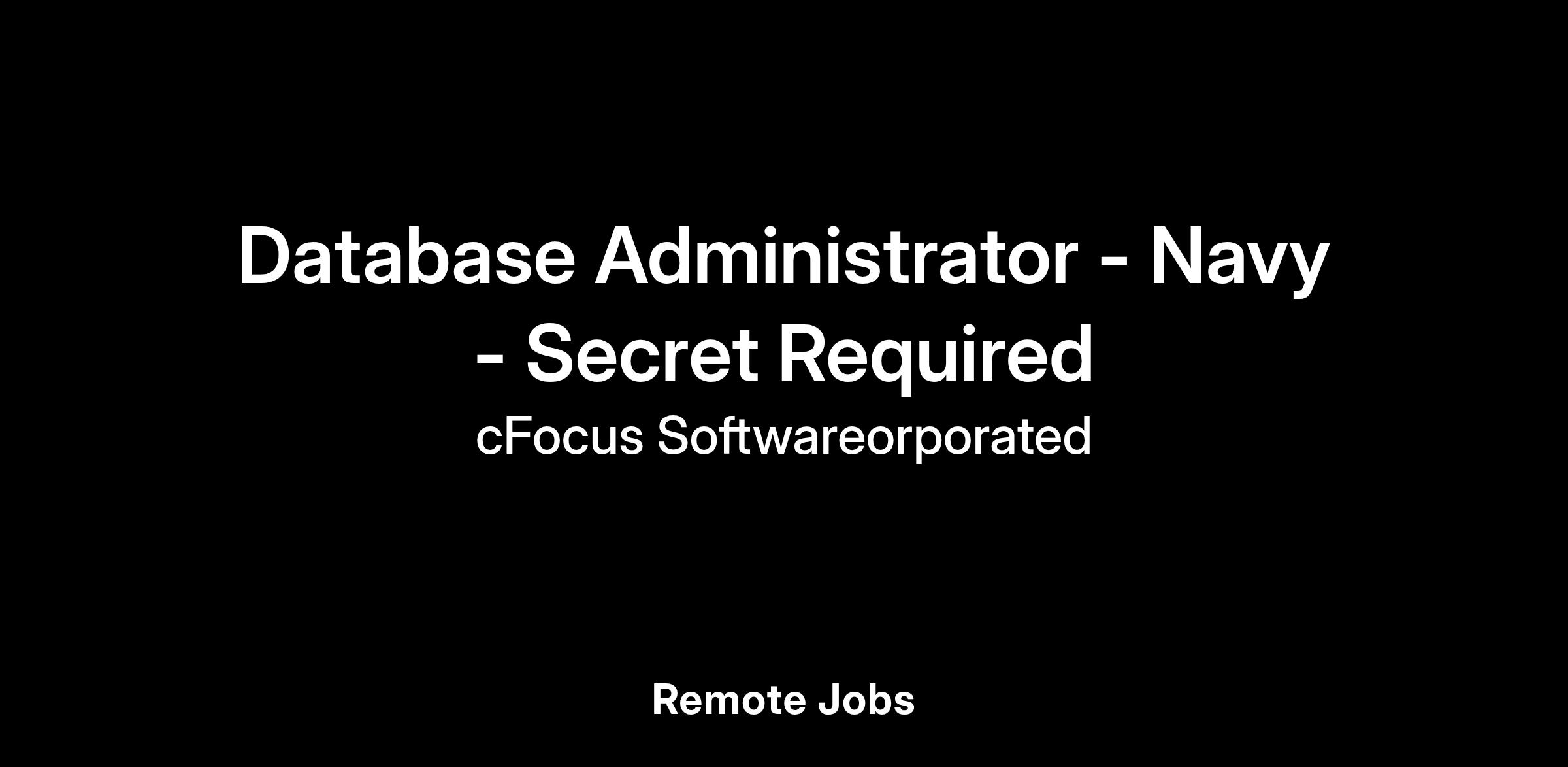 cFocus Software seeks a Database Administrator to join our program supporting the Department of Defense (DoD). This position is remote. This position requires the ability to obtain a Top Secret/SCI clearance.Qualifications:- Four (4) years of professional experience in relational databases and operating as a Database Administrator (DBA).