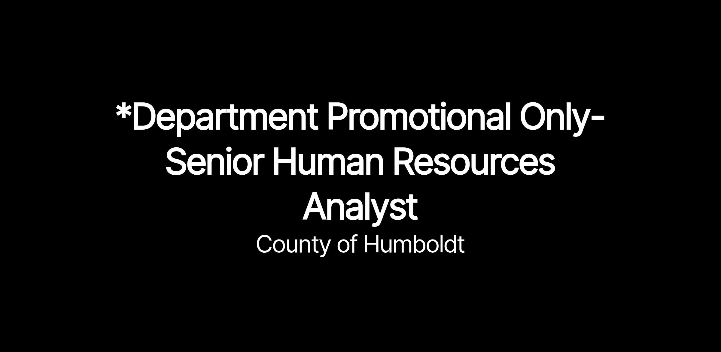 * This is a departmental promotional recruitment. Departmental promotional recruitments are only open to permanent status County employees who are currently employed within the department in which the vacant position exists. This position is allocated in the Human Resources Department.