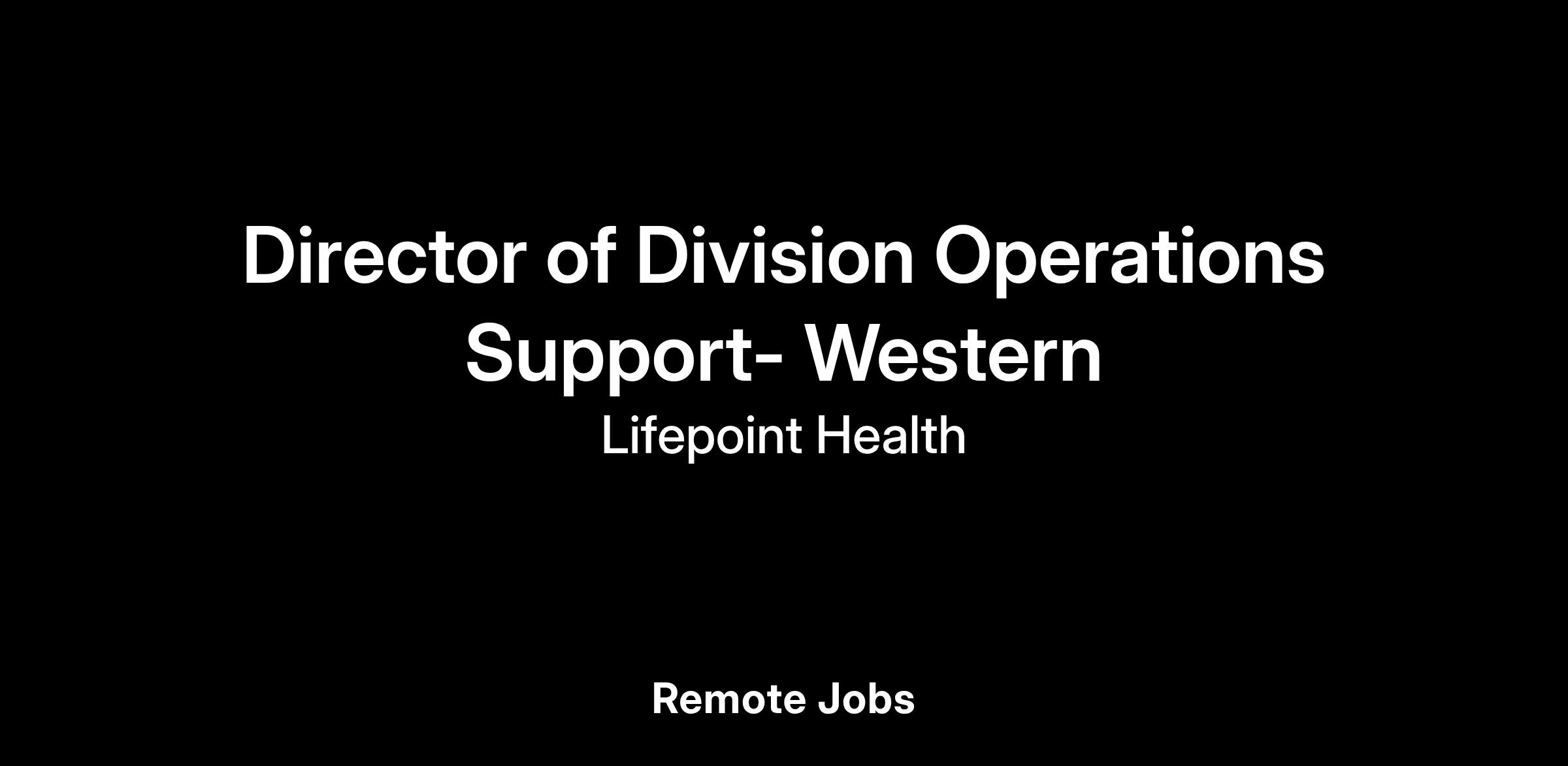 The Director, Division Operation Support will champion a culture of operational excellence, collaboration, and continuous improvement in alignment with LifePoint’s mission to make communities healthier. This position offers an exciting opportunity for an experienced hospital operator / project manager with a strong healthcare background to make a significant impact on the organization's growth, operational efficiency, and overall success.