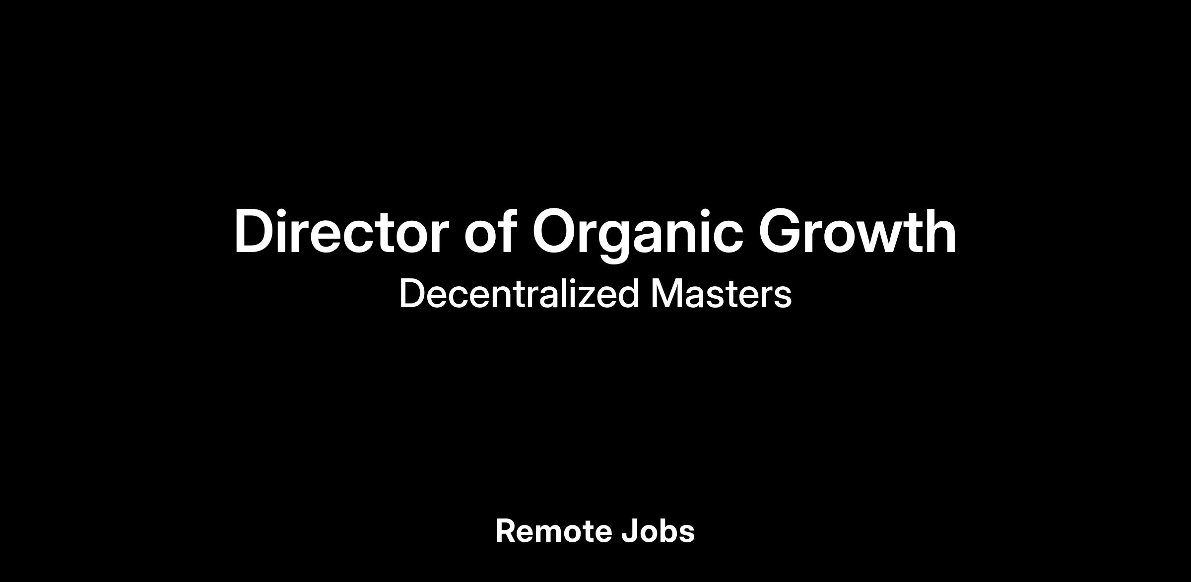 As the Director of Organic Growth, you will be responsible for scaling Decentralized Masters’ reach and impact through organic channels — including SEO, YouTube, social media, email, community, and partnerships.