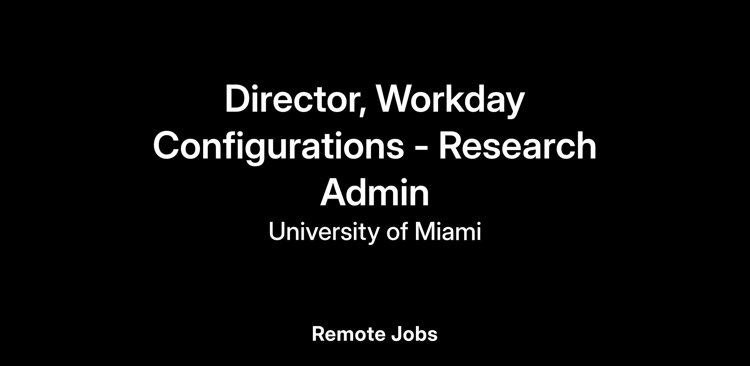 The University of Miami Health System, "UHealth", IT Department has an exciting opportunity for a Full-Time Director, Workday Configurations - Research Admin to work in Miami.