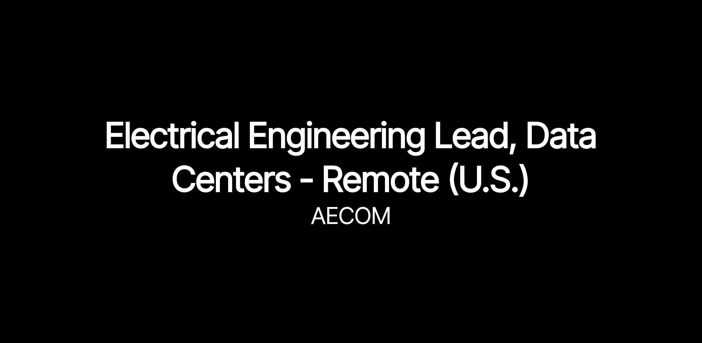 AECOM is seeking an Electrical Engineer Lead specializing in Hyper-scale Data Centers to act as Data Center Electrical Engineer Lead. The job incumbent will be responsible for designing, implementing, and maintaining electrical systems in large-scale data centers.