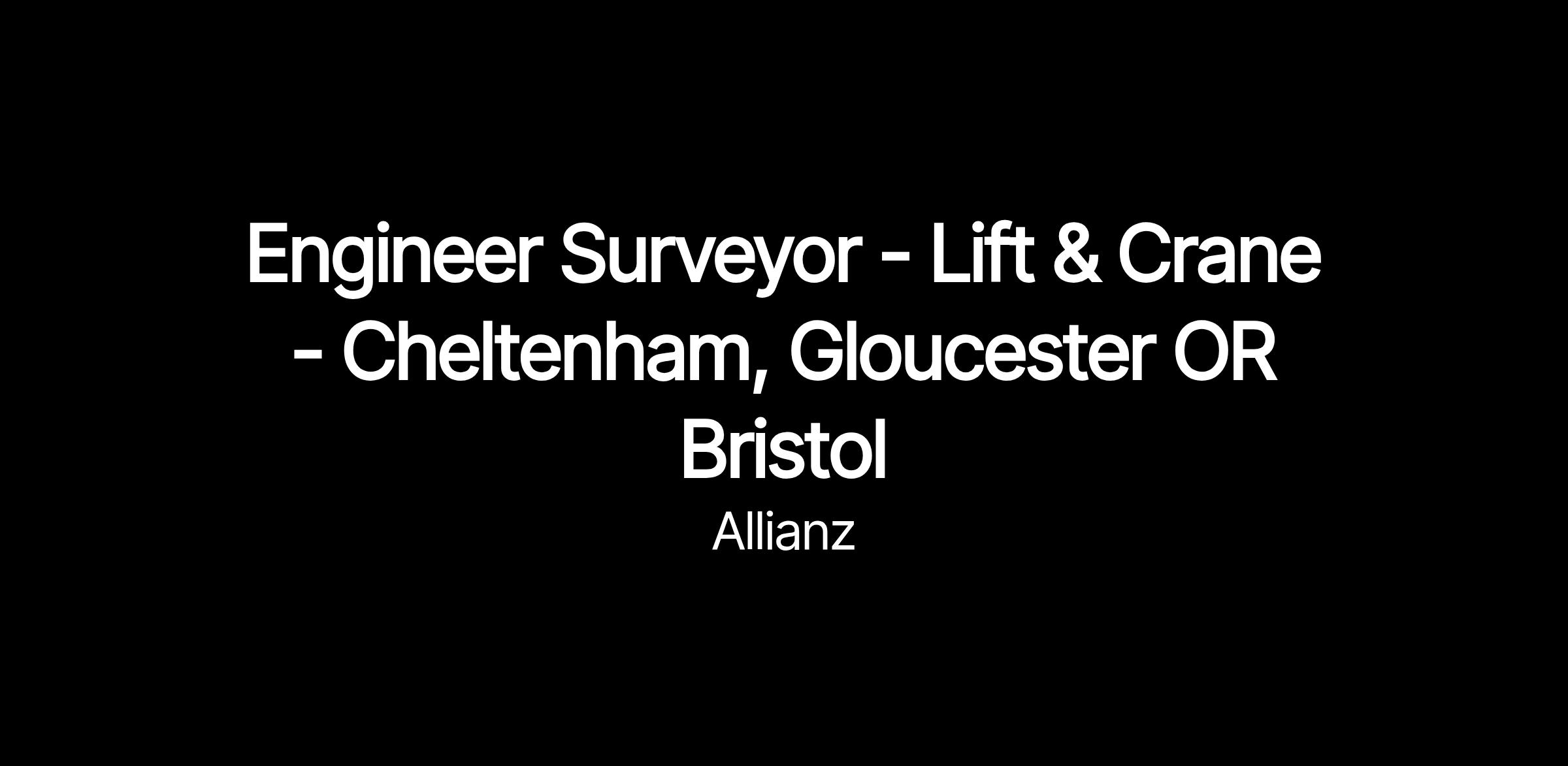 Engineer Surveyor - Lift & Crane - Cheltenham, Gloucester OR Bristol