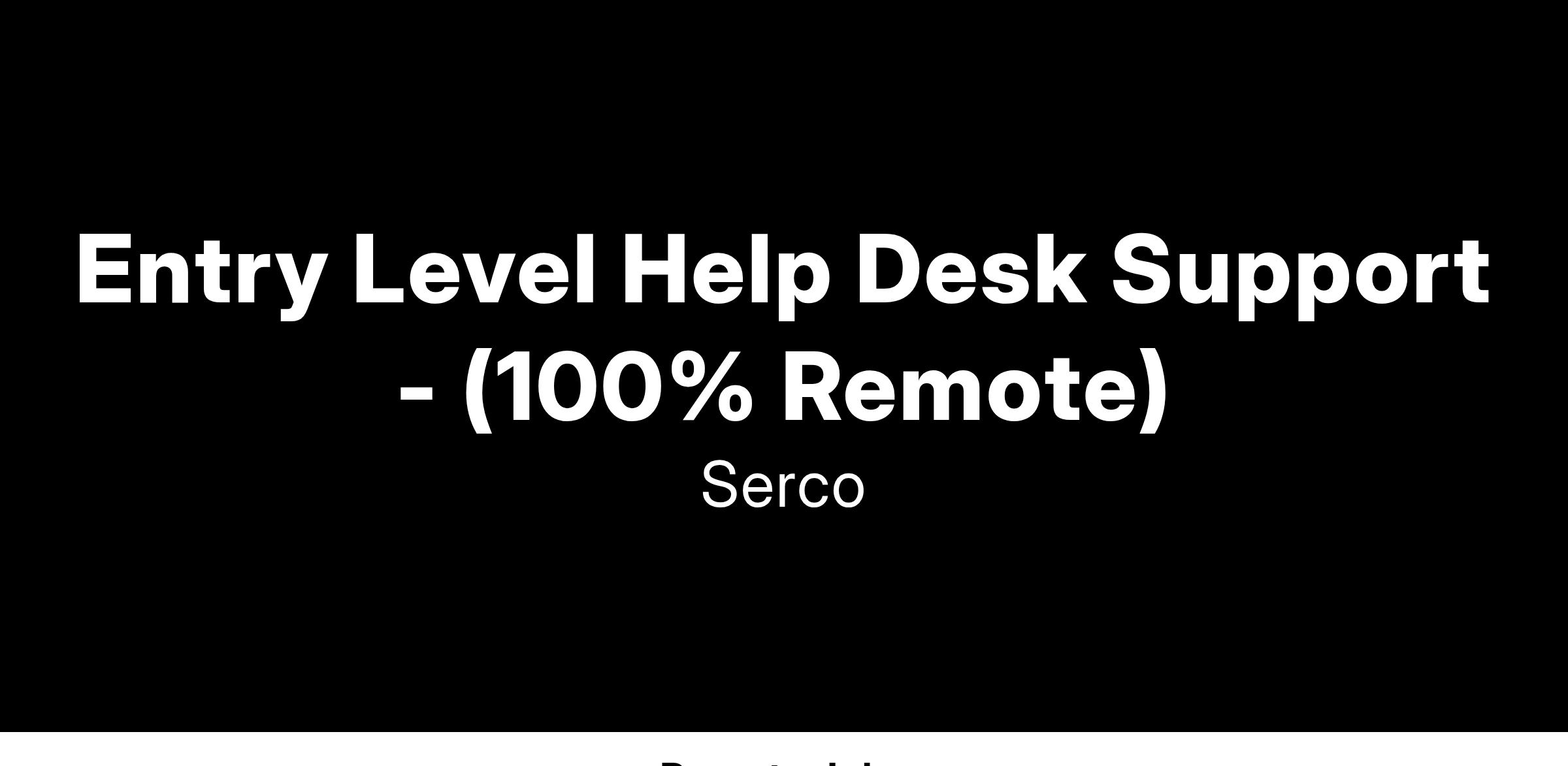 Are you someone that wants to expand your career working in IT? Are you working in IT and want to expand your knowledge? Serco is seeking an Entry Level Help Desk Support to join our Help Desk Support Team to assist and provide support for our Serco employees and contractors (100% remote)!