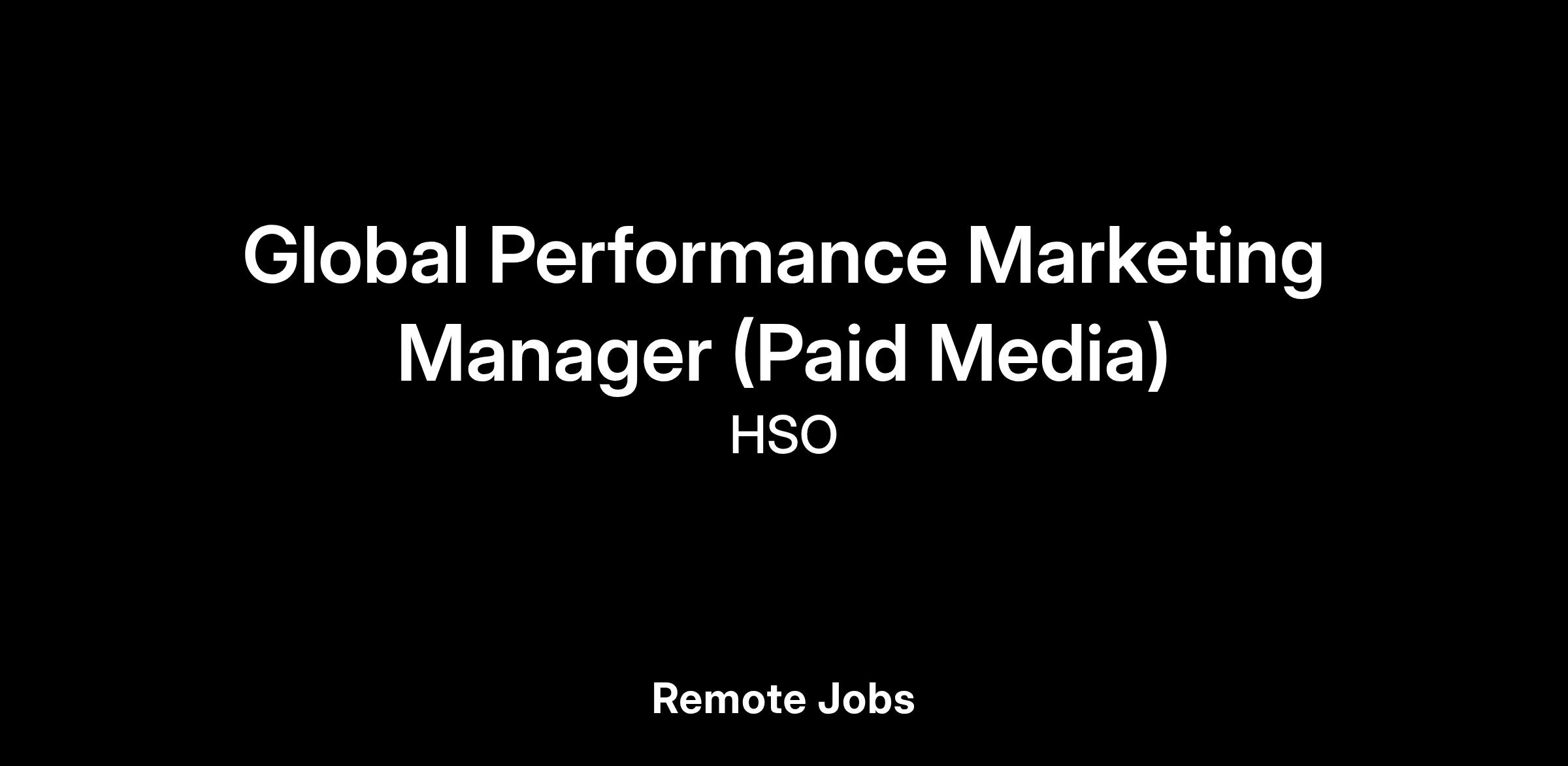 DescriptionAt HSO, we’re looking for a Global Performance Marketing Manager to drive growth through paid digital campaigns across multiple channels worldwide. This is a hands-on role for someone with solid experience running and optimizing campaigns across search, social, display, and newer platforms. The ideal candidate will be comfortable building and managing multiple campaigns, analyzing data, and making smart recommendations to improve ROI, pipeline, and customer acquisition. Strong knowledge of PPC, paid social, and conversion optimization is essential.