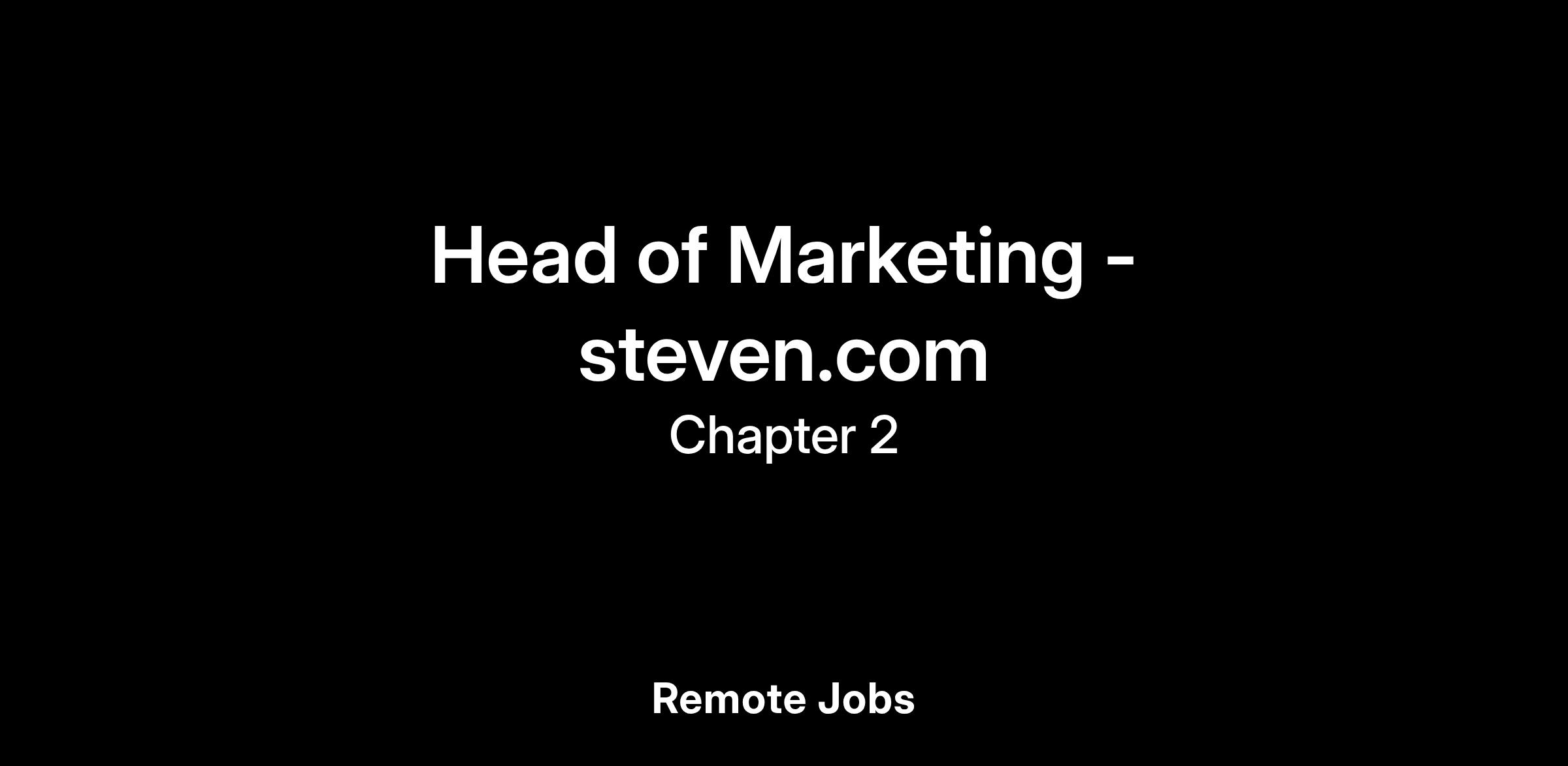 The Head of Marketing will be the visionary architect of the Steven.com brand: transforming us from a collection of businesses into a cultural icon.