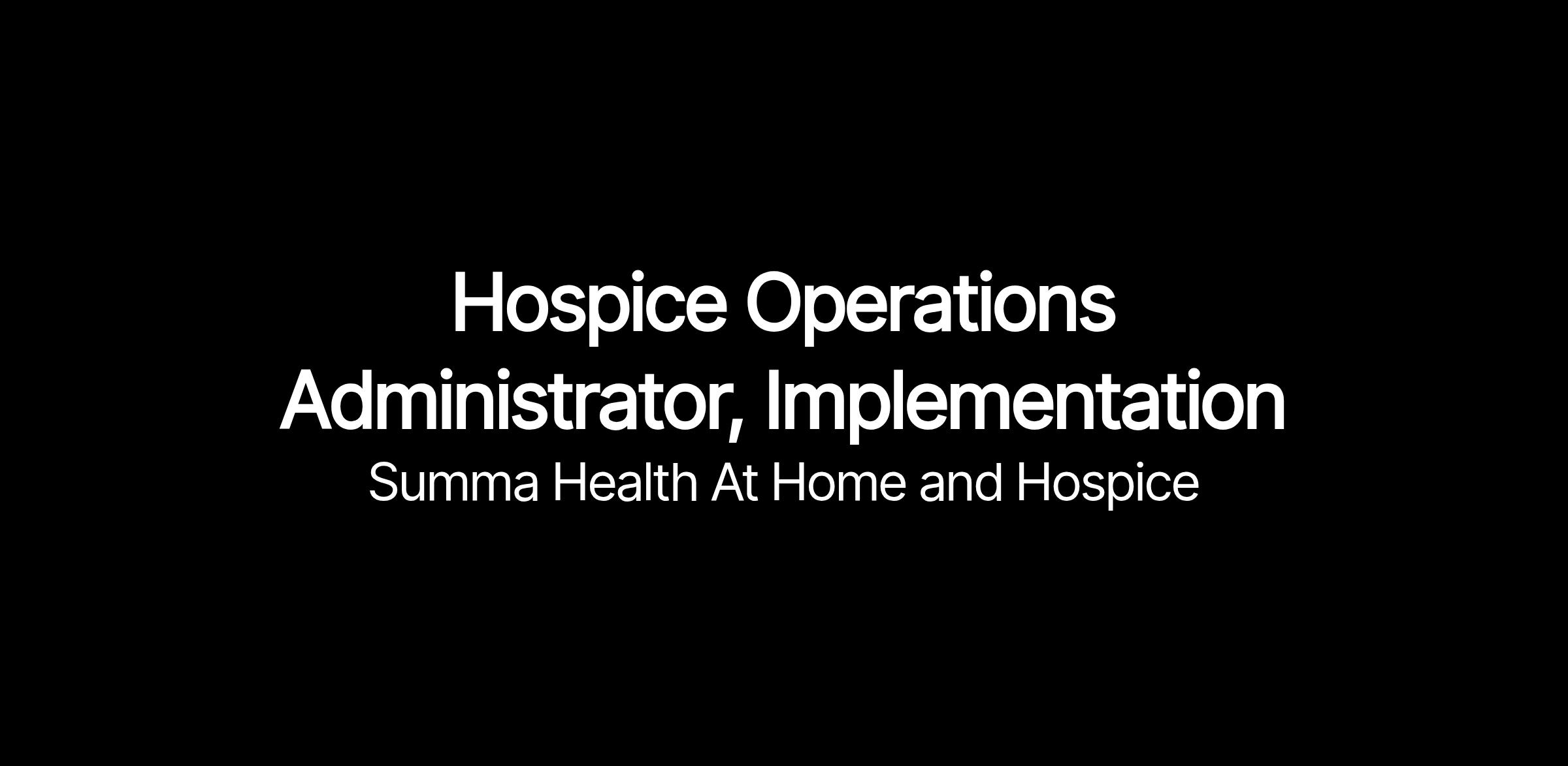 The Implementation, Hospice Operations Administrator plays a critical role in the successful launch and operational integration of hospice agencies formed through joint ventures with leading healthcare systems. This role supports all phases of the implementation process — from 30 days pre-launch through 90 days post-launch — and ensures operational readiness, regulatory compliance, and local leadership development. The Administrator partners with cross-functional teams to optimize resources, standardize workflows, and drive agency performance aligned with ASHN standards and strategic growth goals.