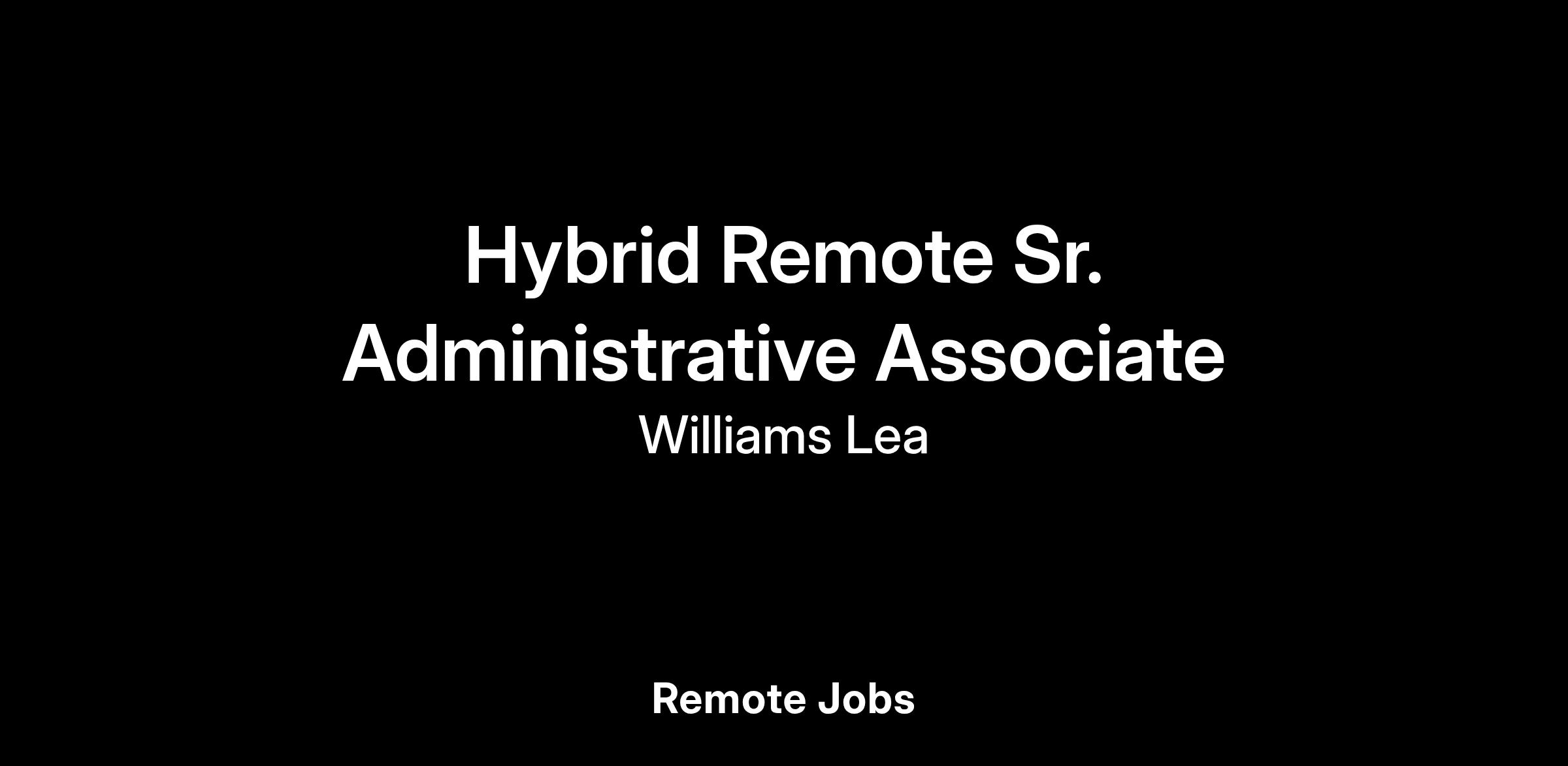 · Minimum (2) years administrative support experience in a professional organization, preferably in the legal or banking industry; or experience performing administrative duties for a Williams Lea client operation for a minimum of (1) year or more. Formal education and/or training may be considered in lieu of experience