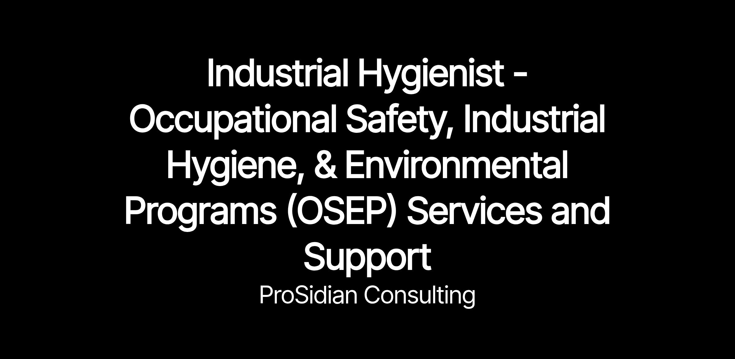Onsite Industrial Hygienist professionals provide Advanced hazard detection, exposure analysis, and control implementation for safe, compliant, high-performance workplaces Provide clear, compliant, data-driven Occupational Safety, Industrial Hygiene, & Environmental Programs (OSEP) Services and Support focused on safety, hygiene, and environmental solutions protecting people, operations, and mission performance everywhere