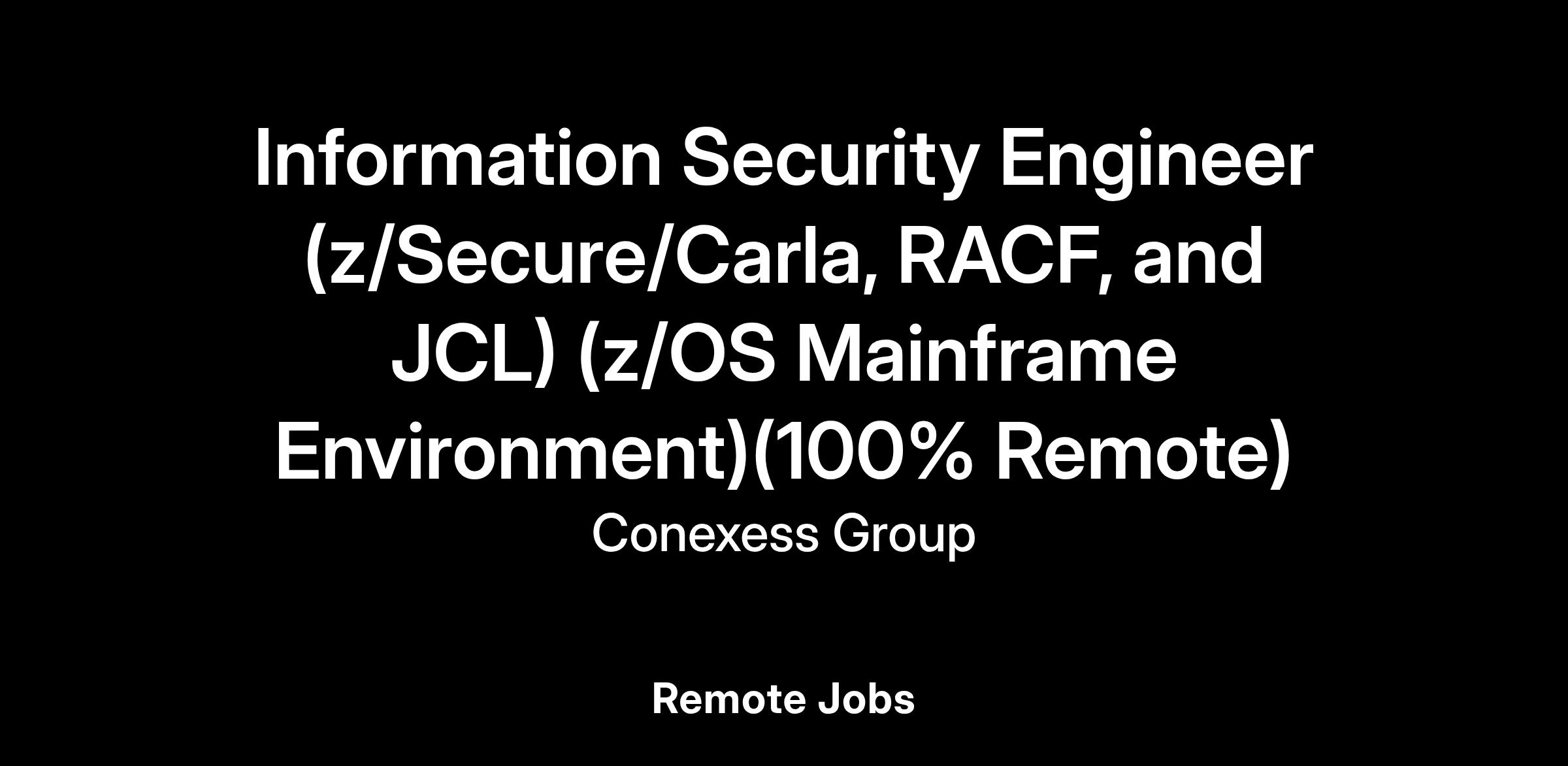 Information Security Engineer (z/Secure/Carla, RACF, and JCL) (z/OS Mainframe Environment) (100% Remote)