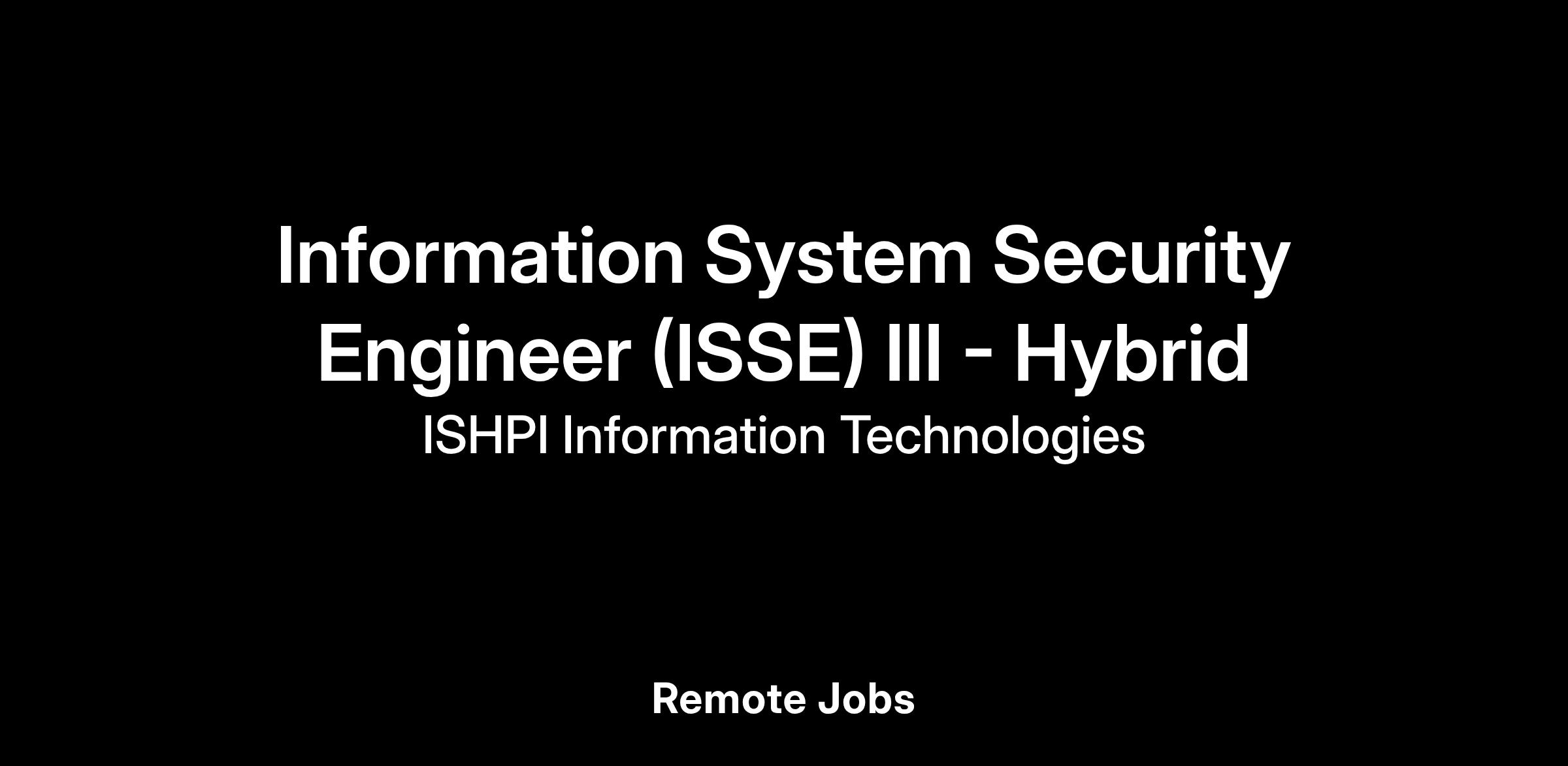 “Ishpi Information Technologies, Inc. is an Equal Opportunity Employer. All qualified candidates will be considered without regard to legally protected characteristics.