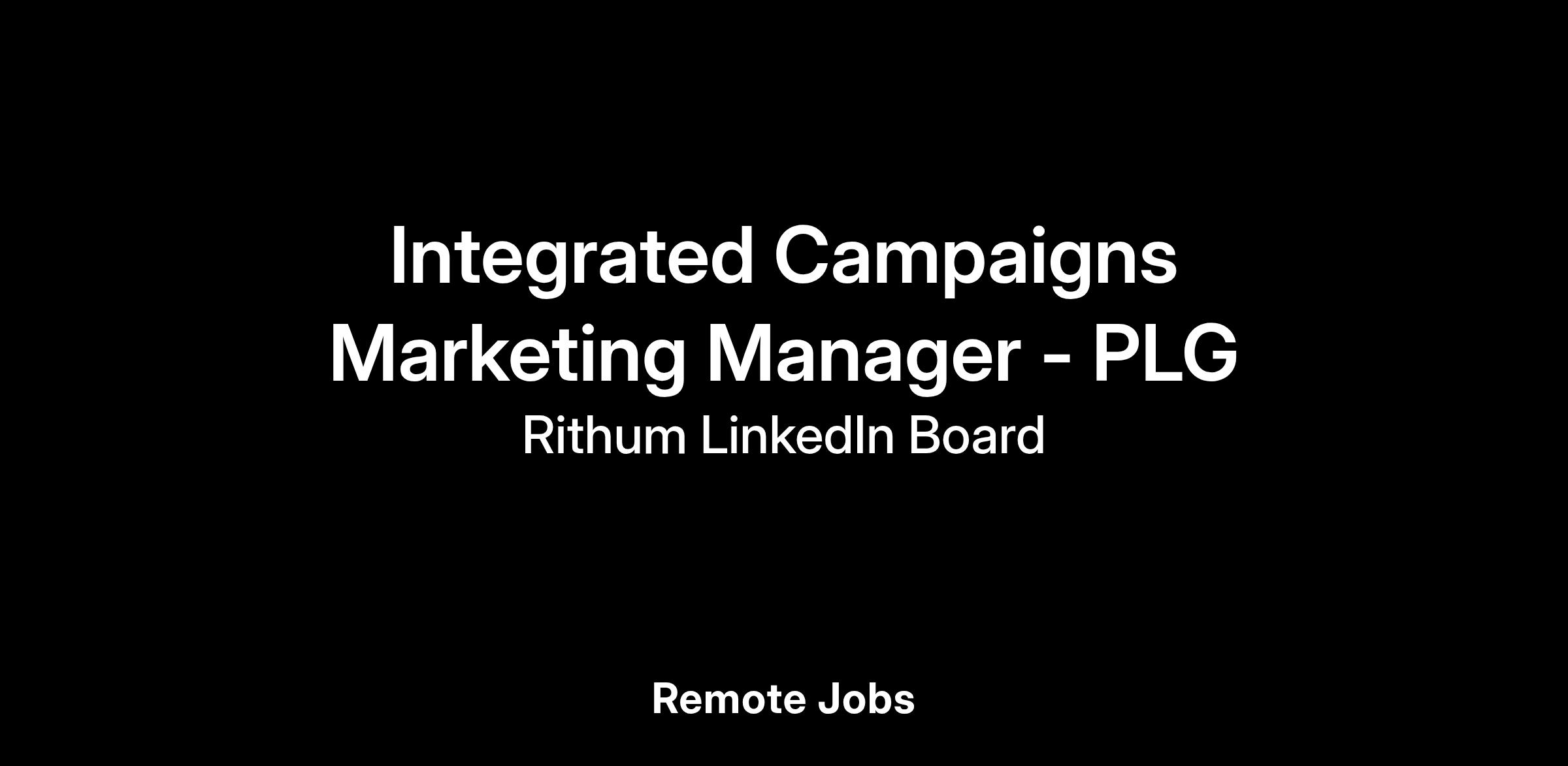 As the Integrated Campaigns Marketing Manager (PLG Focus), you design and execute multi-channel campaigns that accelerate product-led growth, self-serve adoption, and revenue expansion. You bridge traditional marketing strategy with the unique dynamics of a PLG funnel, where product experience and in-app engagement drive growth as much as acquisition. Working at the intersection of growth marketing, lifecycle, and product experience, you partner with product, data, and go-to-market teams to turn user insights into integrated campaigns that inspire sign-ups, activate users, and convert self-serve customers into enterprise advocates. You bring both strategic vision and hands-on execution, using data and experimentation to connect every touchpoint, from digital campaigns to in-product journeys, into a seamless path from awareness to expansion. This is an opportunity to shape Rithum’s PLG motion and define how we bring our products to market in a PLG-first world.