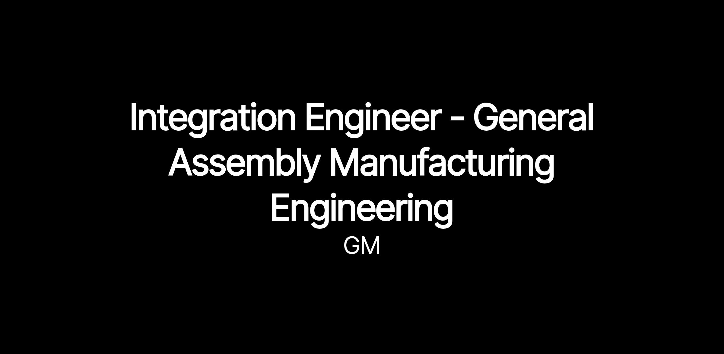 Integration Engineer - General Assembly Manufacturing Engineering