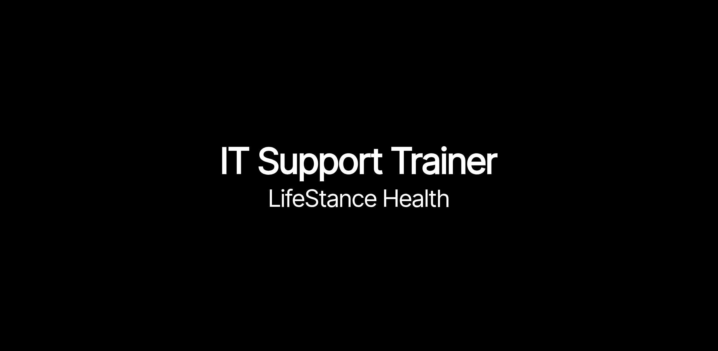 The IT Support Trainer is responsible for developing and delivering training programs that improve technology proficiency for LifeStance end users. This role focuses heavily on Microsoft 365 applications, Windows navigation, basic computing skills, and other core systems used by clinicians and administrative teams.