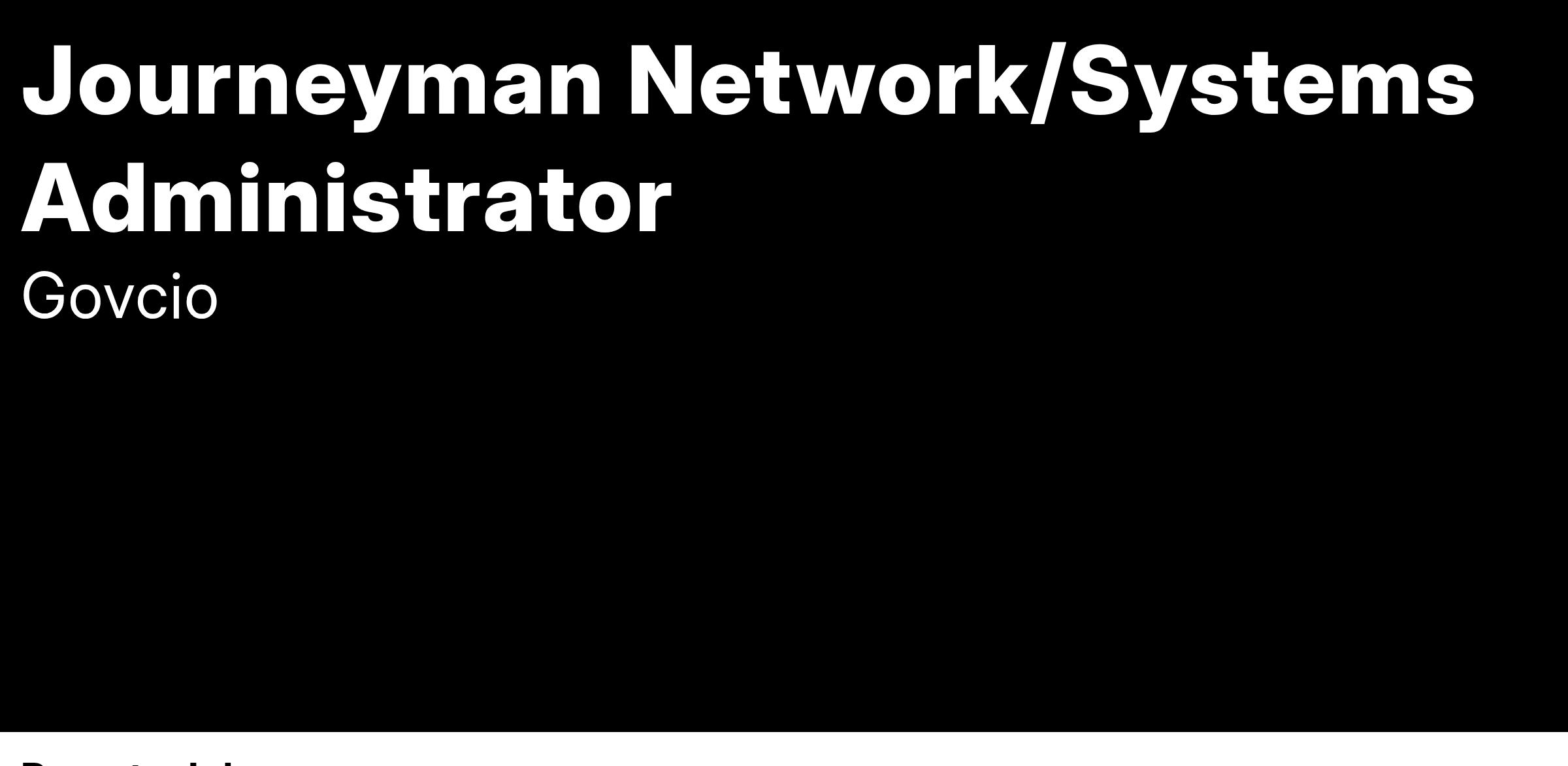 GovCIO is currently hiring for a Journeyman System Adminstrator with an active Secret clearance. This position will be located in Sterling, VA and El Paso, TX and will be a fully remote position.