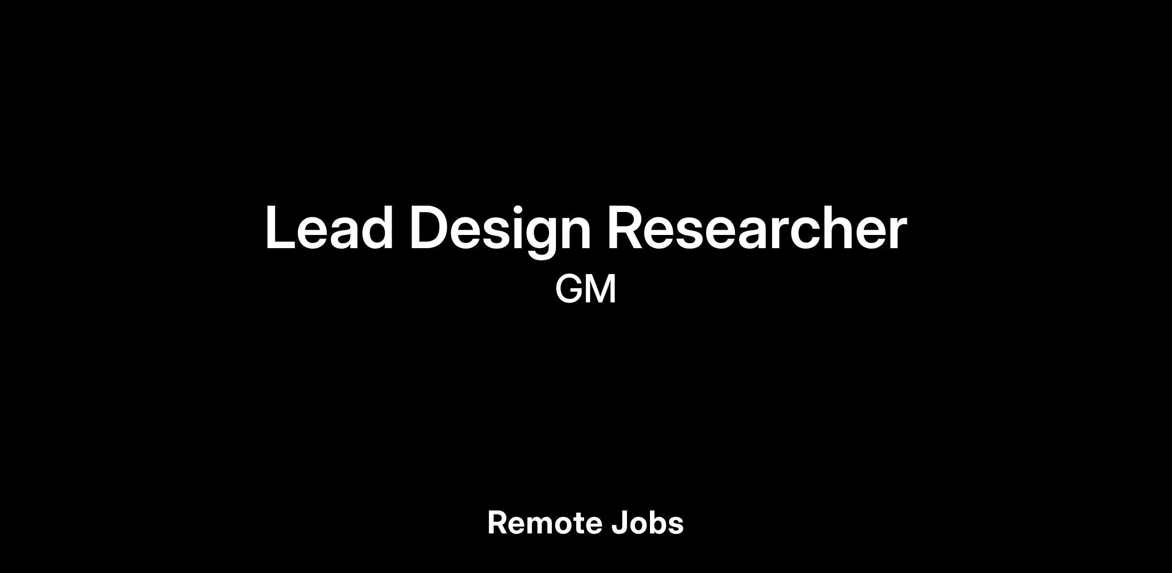 GM’s Human Interface Design Studio is hiring a Lead Design Researcher (Hybrid Manager/IC) to help shape the future of web and app experiences across General Motors and its marquee brands. As part of our team, you’ll collaborate with design, product, engineering, brand, and marketing teams to craft well designed research initiatives to inspire and inform user centered designs.