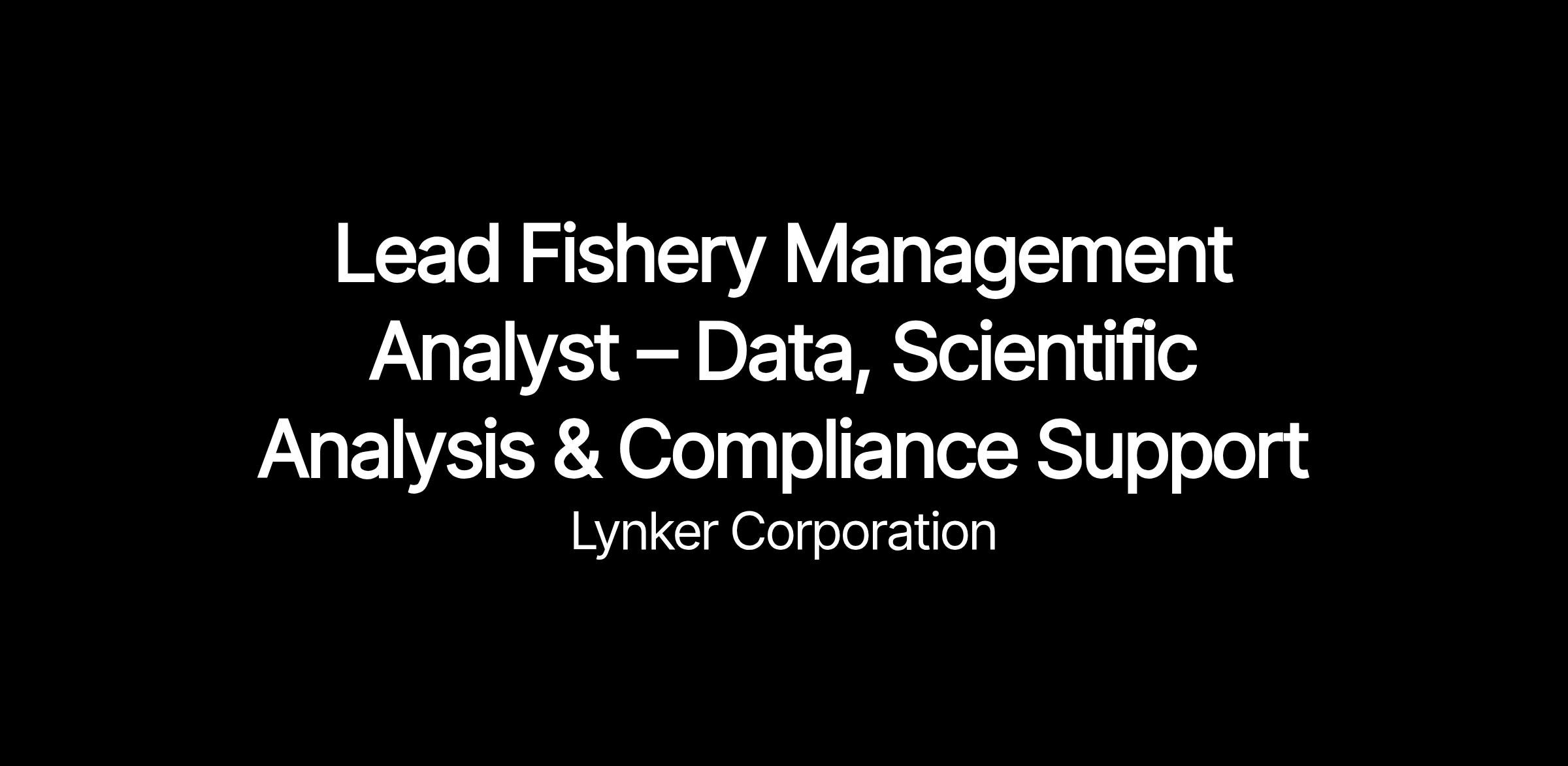 Lynker Corporation is seeking to hire a Lead Fishery Management Analyst – Data, Scientific Analysis & Compliance Support to support a contract with NOAA’s National Marine Fisheries Service (NMFS), Office of Sustainable Fisheries (OSF). This is a full-time, primarily remote position anticipated to begin August 1, 2026. Hiring for this position will be contingent on contract award. Lynker will be operating under its FLOAT joint venture, a NOAA ProTech Fisheries 2.0 prime contract holder.*