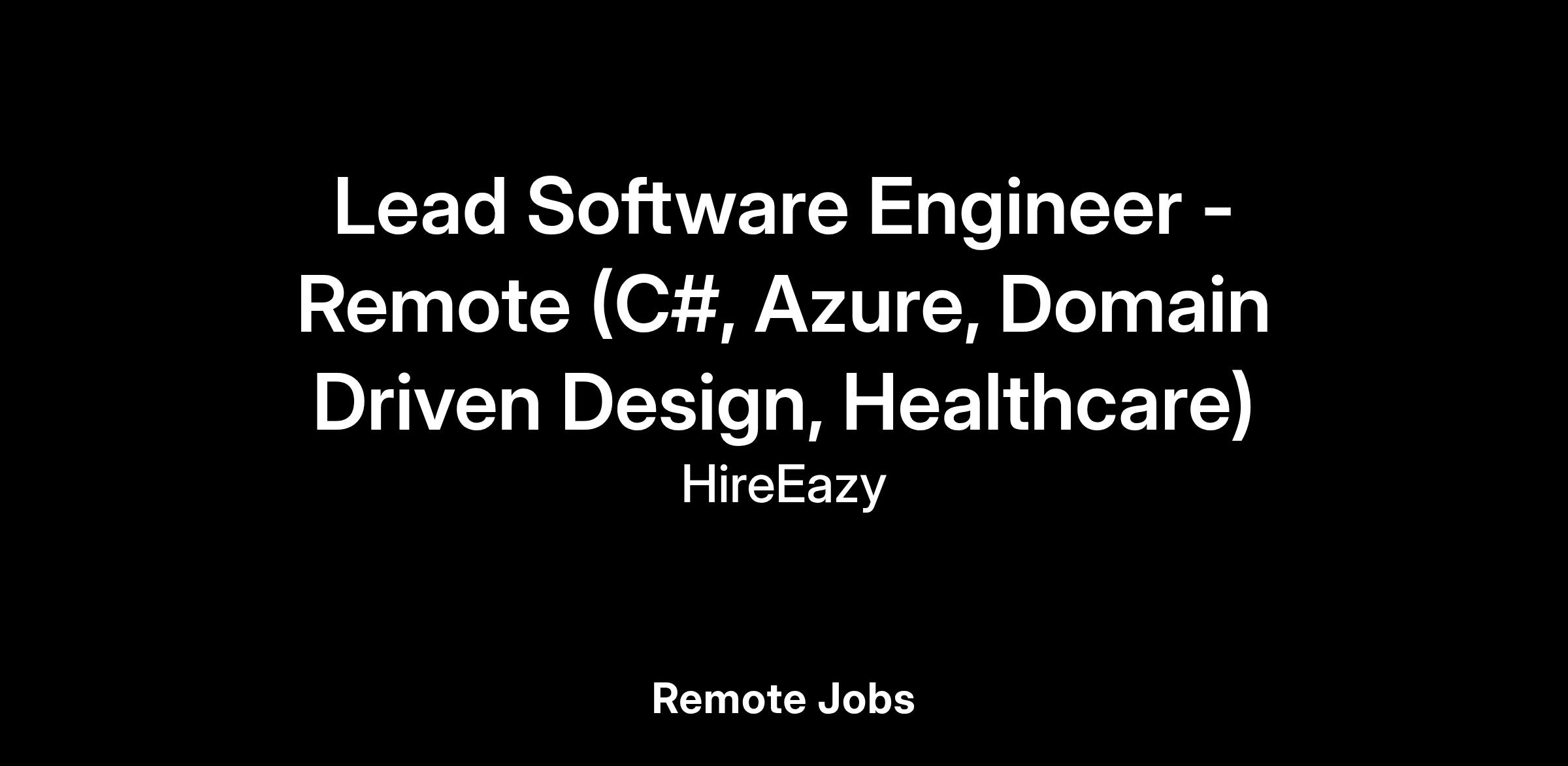 Lead Software Engineer - Remote (C#, Azure, Domain Driven Design, Healthcare)
