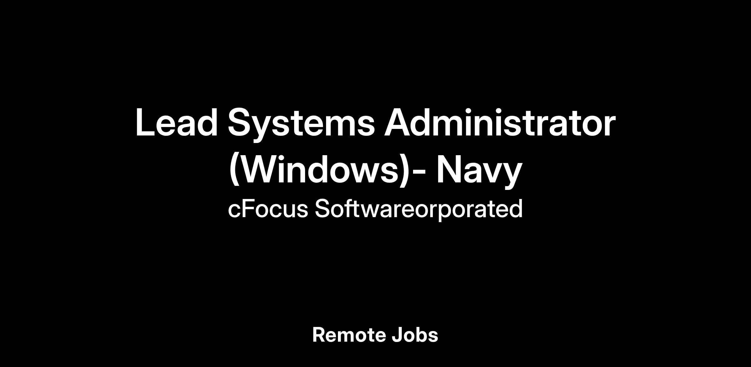 cFocus Software seeks a Lead Systems Administrator (Windows) to join our program supporting the Navy. This position is remote. This position requires active TS/SCI clearance.Qualifications:- A degree in Computer Science, Information Systems, Engineering, Business Administration, or other related discipline is preferred.