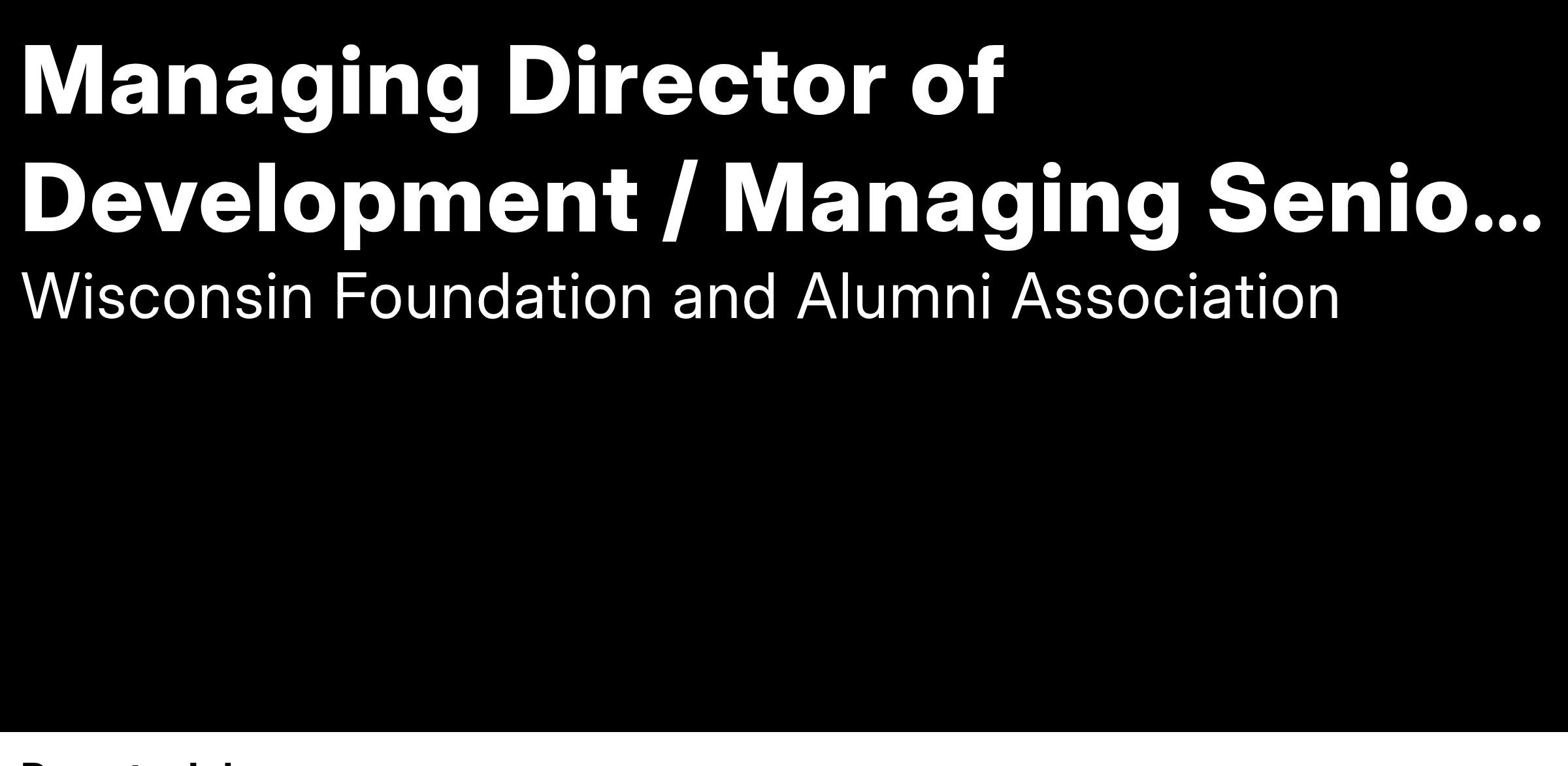 The Wisconsin Foundation and Alumni Association (WFAA)*, the private fundraising and alumni relations organization for the University of Wisconsin-Madison, is hiring a Managing Director/Senior Managing Director of Development to support UW Madison, College of Engineering. The Managing Director/Senior Director of Development is responsible for providing first level management to assigned development programs and staff.