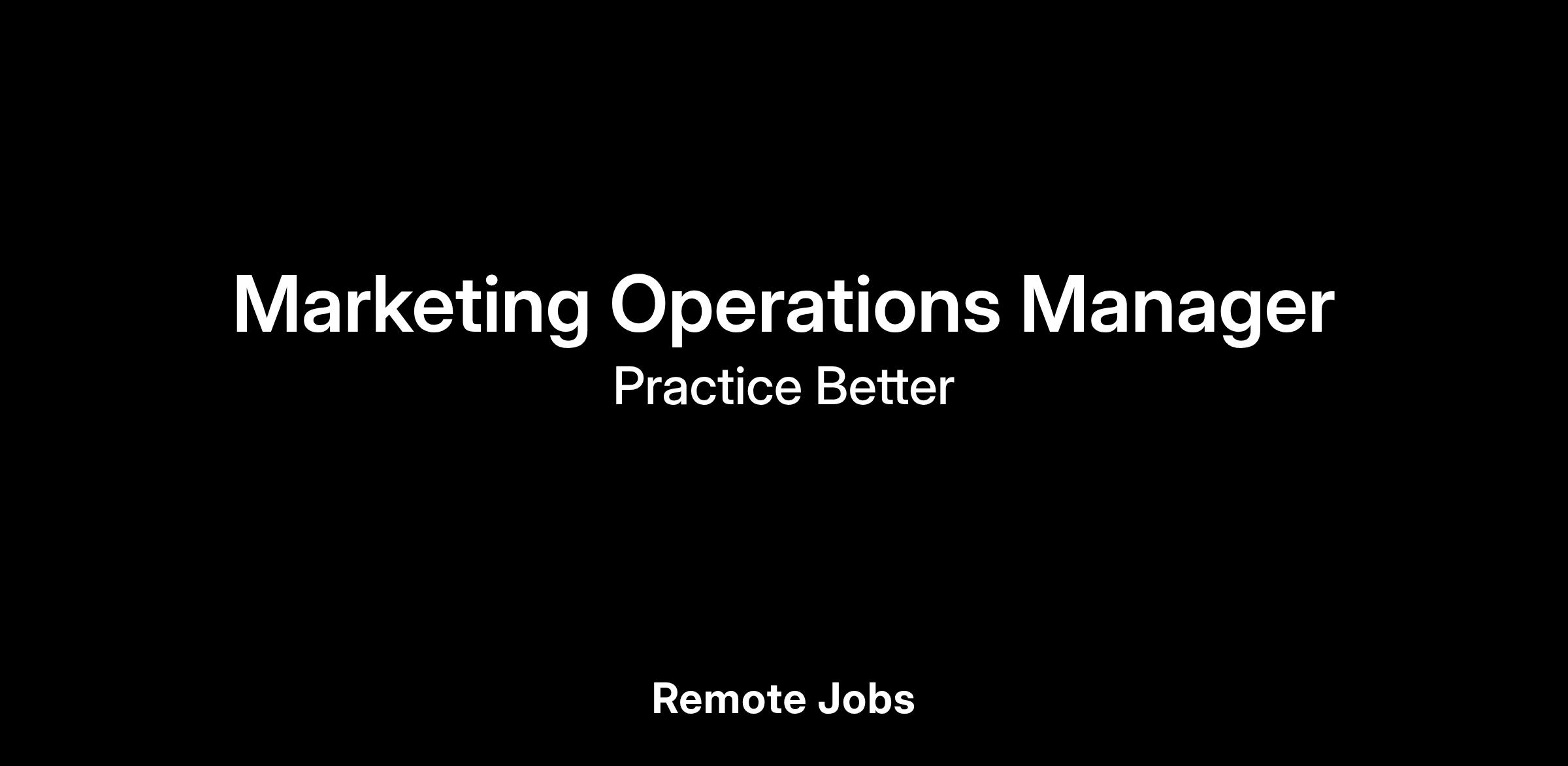 Practice Better is seeking a data-driven Marketing Operations Manager to sit at the critical intersection of marketing, data analytics, and finance. This role will be instrumental in driving efficiency, optimizing performance, and providing the analytical foundation that powers our marketing strategy. You'll transform complex data into actionable insights, ensuring every marketing dollar drives measurable impact for our health and wellness practitioner community.