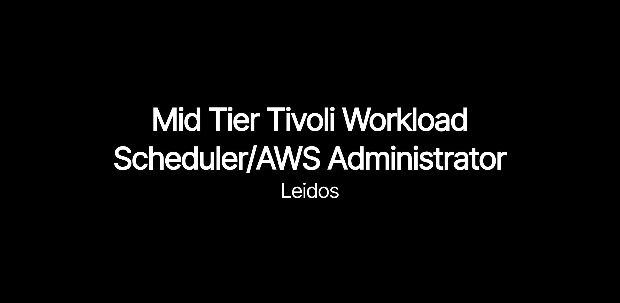 the Digital Modernization Sector has an opening for a Mid Tier Tivoli Workload Scheduler/AWS Administrator to support a large healthcare contract.