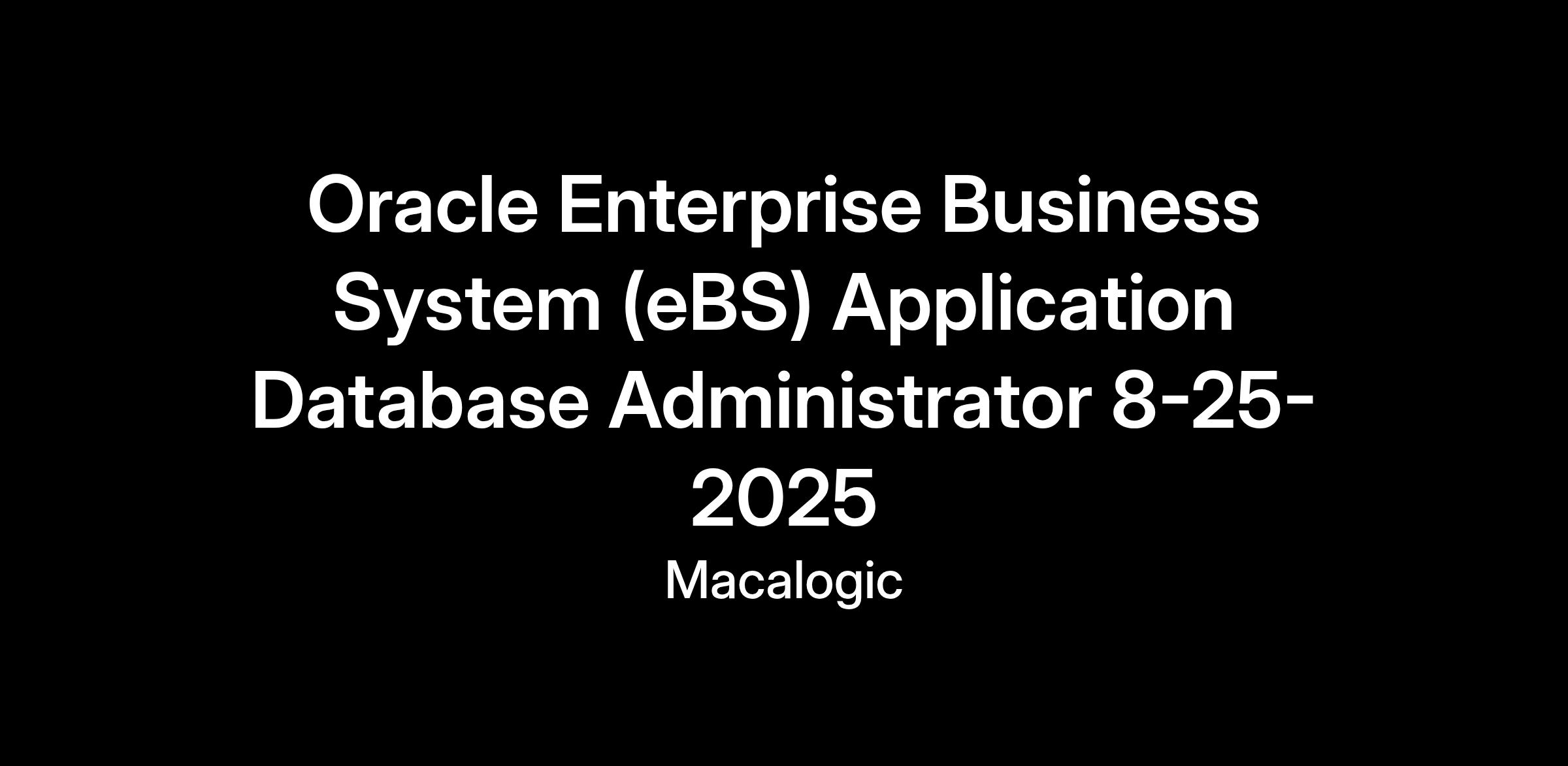 General Description The successful candidate will provide Oracle eBS database expertise and administration to the Air Force’s Human Resources (HR) Family of Systems software development and system modernization efforts in San Antonio, TX. The successful candidate will have a deep understanding and level of expertise with various components of Oracle’s Enterprise Business System (eBS) software solution, providing database management and technical support to address system, database, and data issues that inhibit production processing; perform Oracle database and overall eBS software installations and patching; provide knowledge and expertise surrounding product configuration and resulting impacts on the eBS database; and perform troubleshooting across multiple instantiations, with direct focus on the databases and products of Oracle’s eBS software solution.