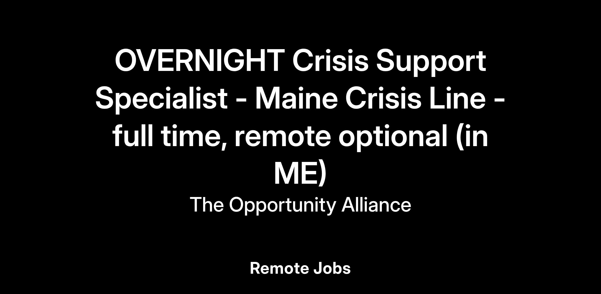 The Opportunity Alliance is hiring Full-Time Crisis Call Specialist(s) to join the team with the Maine Crisis Line (MCL).