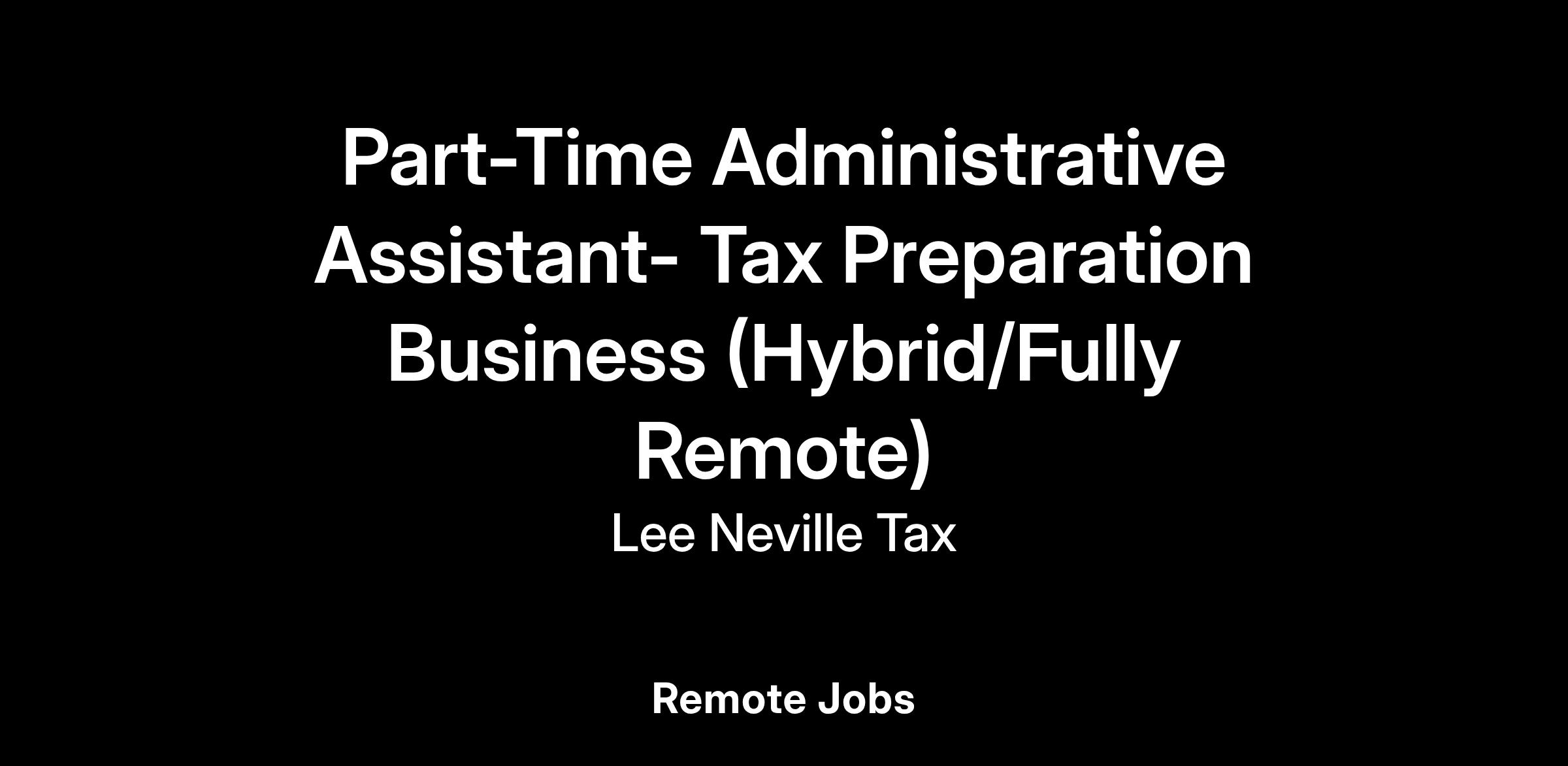 Part-Time Administrative Assistant- Tax Preparation Business (Hybrid/Fully Remote)