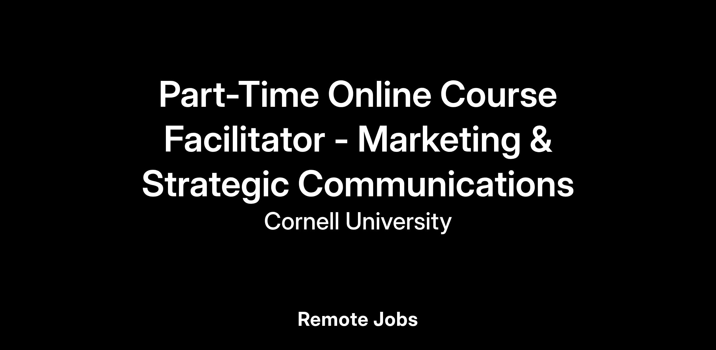 We are seeking experienced professionals to join our team as Course Facilitators. Facilitators are not course authors or adjunct faculty but are vital to ensuring the effective delivery of content created by Cornell faculty.