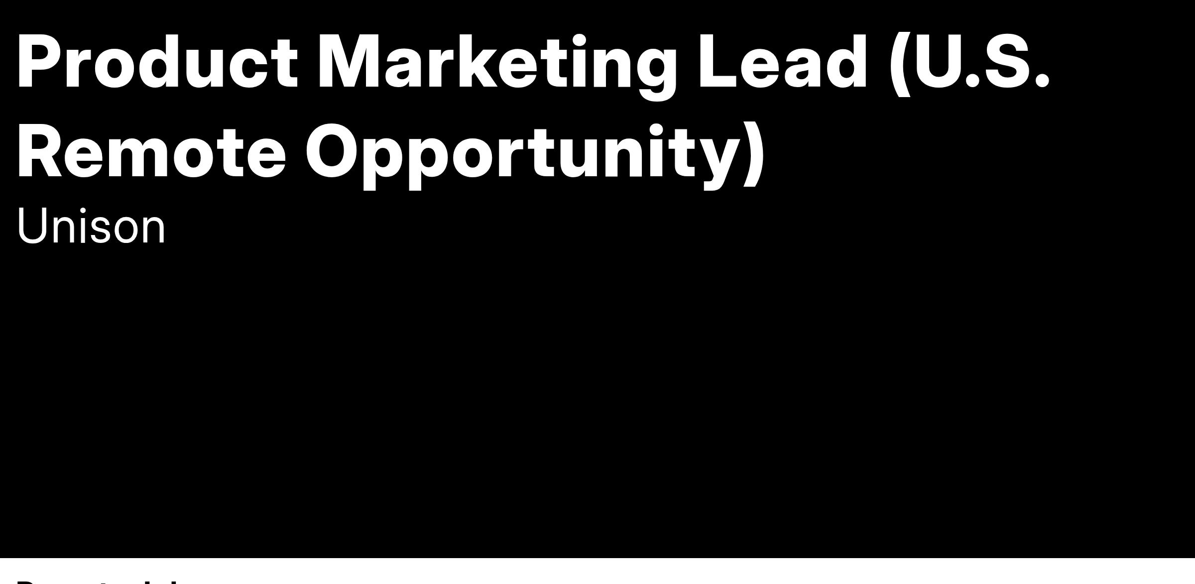 As Product Marketing Lead, you'll serve as the connective tissue between Product, Sales, and Marketing, owning the narrative around what we build, why it matters, and how it helps our customers win. This role combines a deep understanding of our buyer personas with sharp go-to-market instincts. You'll position Unison's solutions in compelling ways, enable sales with assets and messaging that resonate, know the competitive landscape, and lead product marketing campaigns.