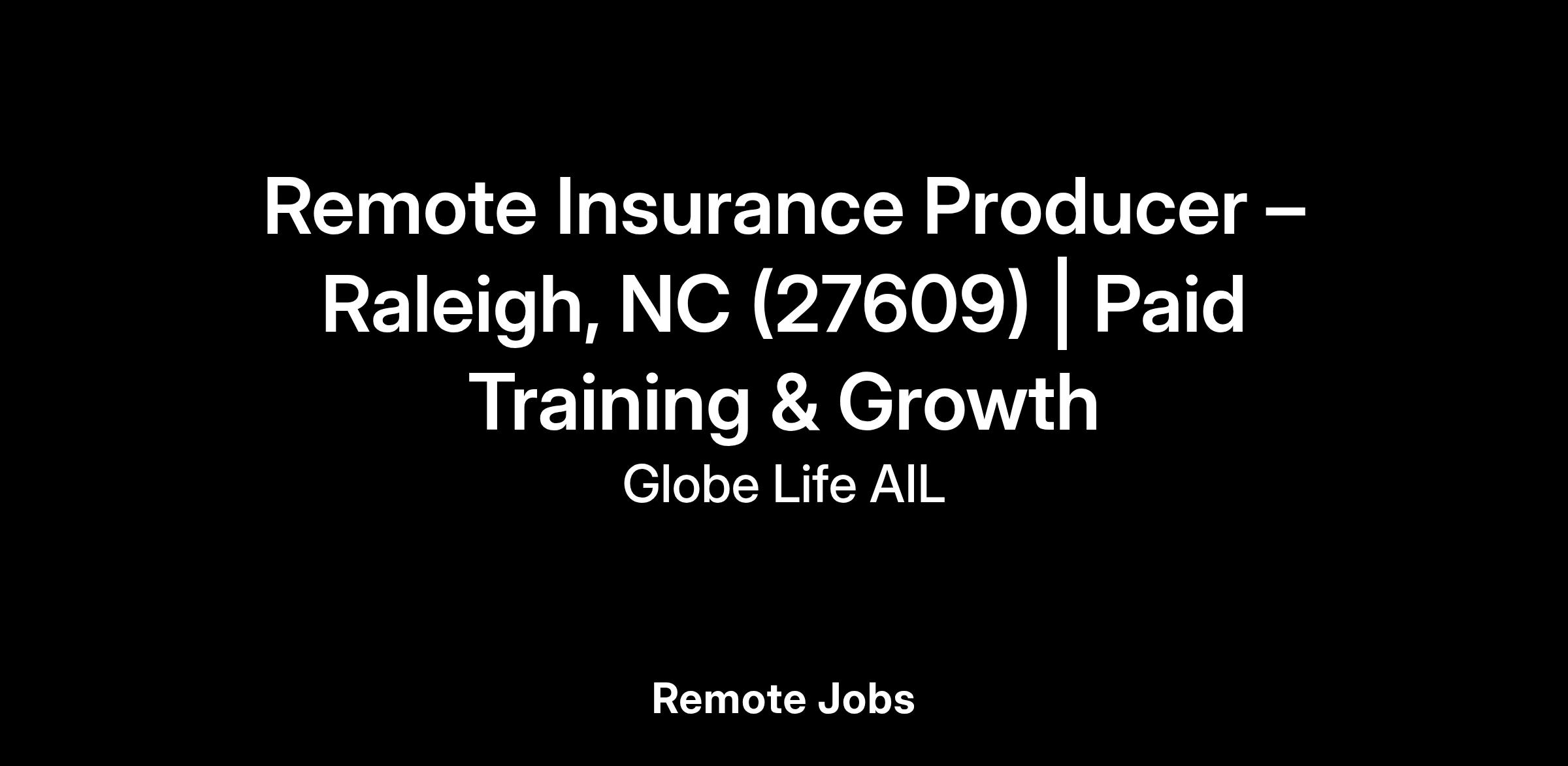 Now hiring Remote Insurance Producers in Raleigh, NC! Earn $75K–$100K+, paid training, no cold calling, and fast-track leadership opportunities.