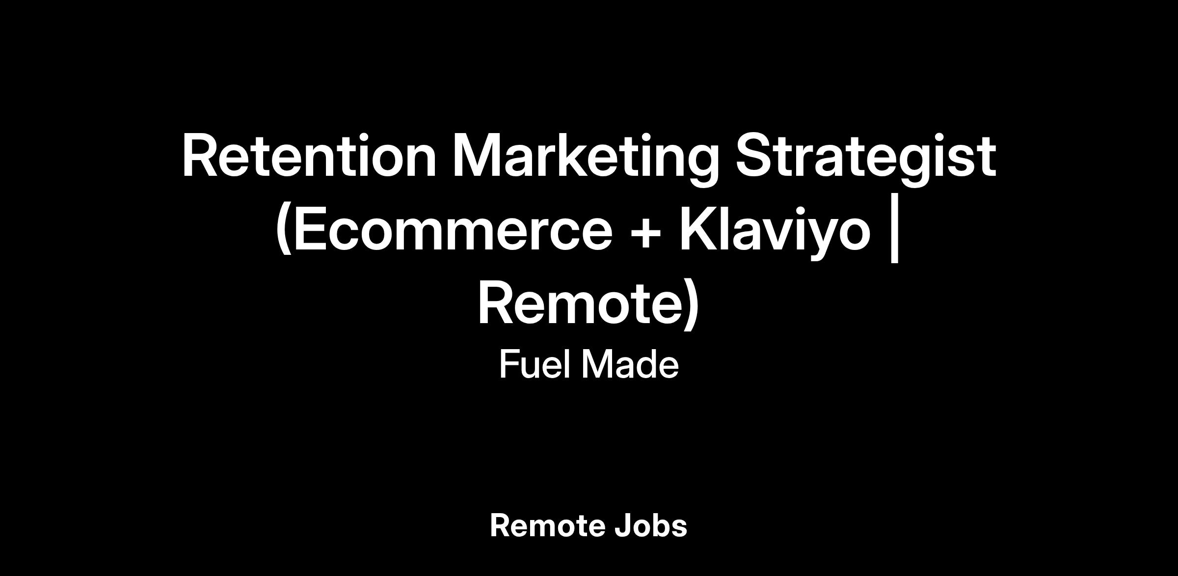 Fuel Made is looking for a Retention Marketing Strategist to lead strategy and client relationships for high-performing Shopify brands on Klaviyo. In this role, you’ll own retention roadmaps, guide creative campaigns across email and SMS, and help brands grow customer lifetime value through storytelling, segmentation, and smart automation.