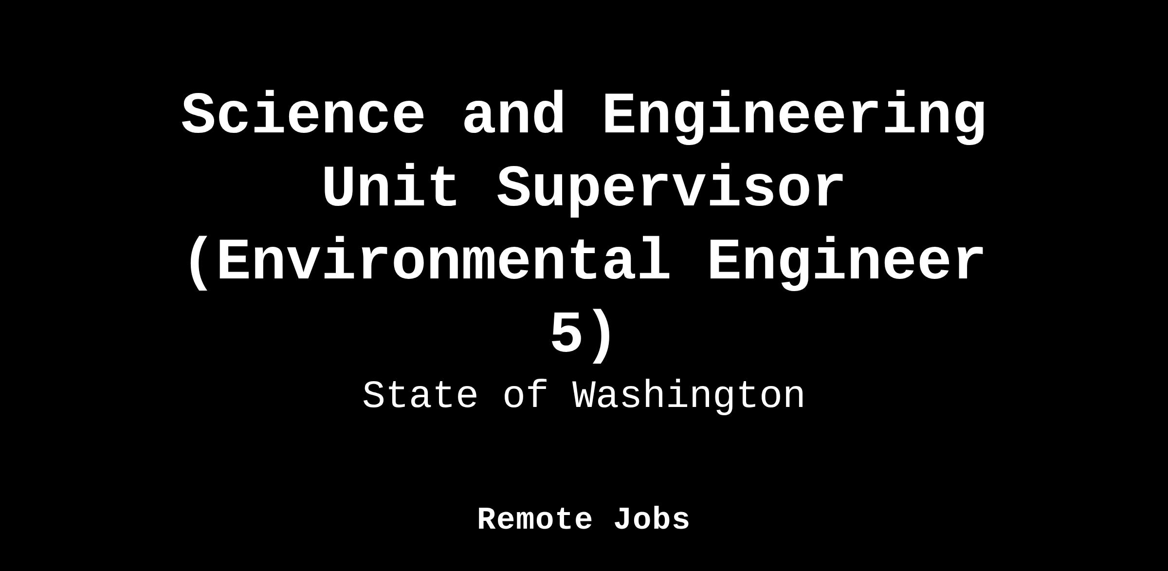The Department of Ecology is hiring a Science and Engineering Unit Supervisor (Environmental Engineer 5) within the Nuclear Waste Program.