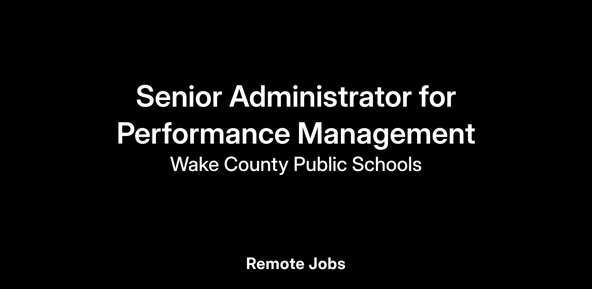 Senior Administrator-Performance Management